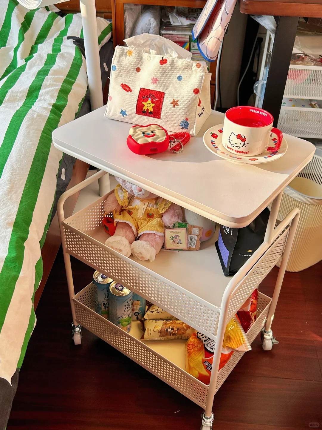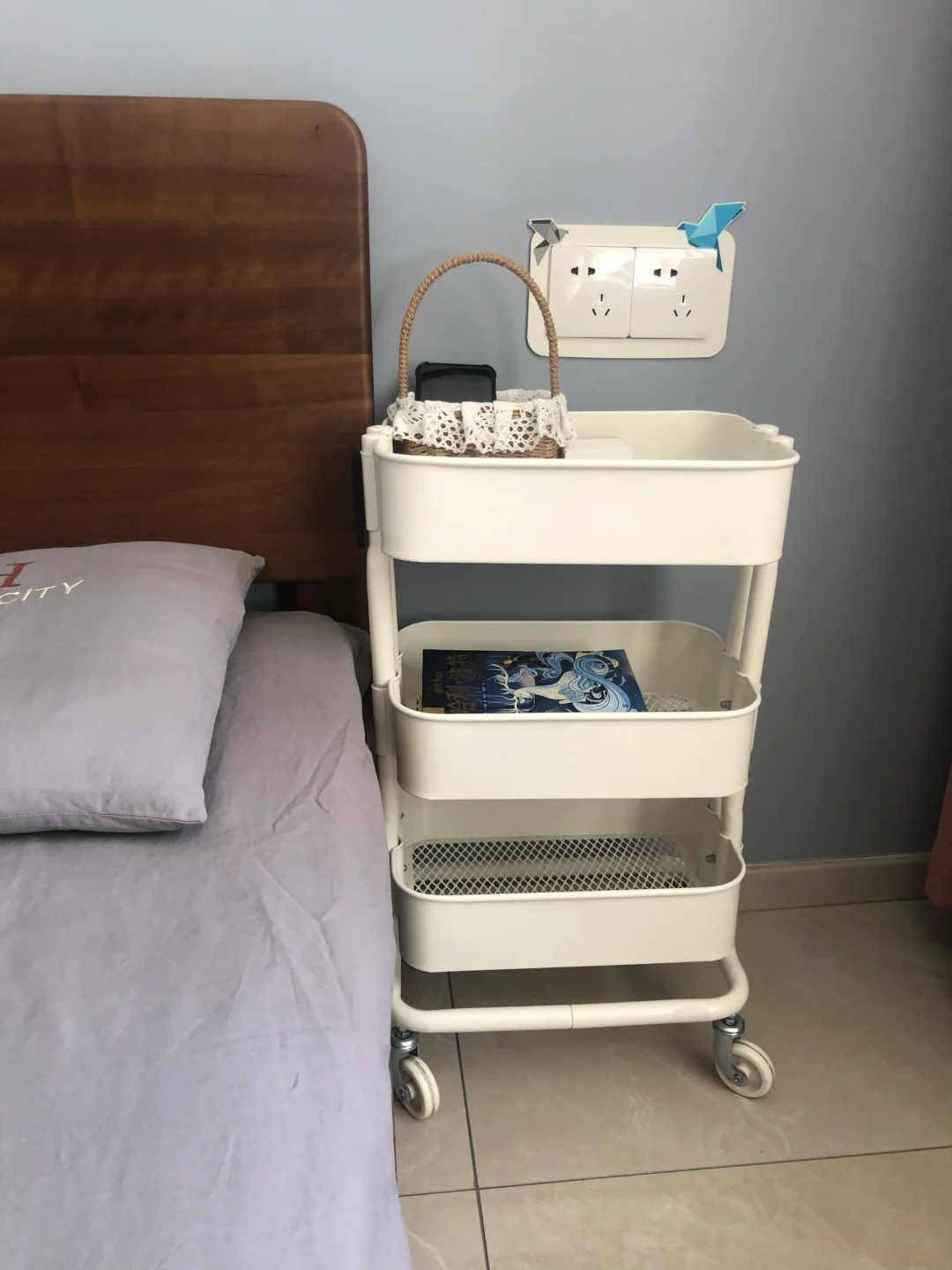 一个不到二十几元的小推车,就能够完美解决家中床头柜的问题,小推车还是3-4层置物架的形状。