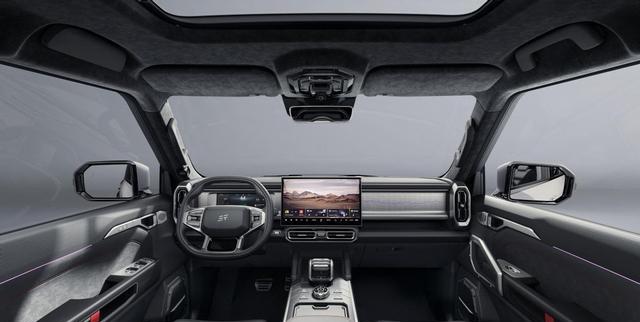 车内改进了四个方面,用了更深的黑红配色,显得更暗酷。出风口用了哑光电镀处理,还有G318路线图案的氛围灯装饰板,钥匙也是金属质感的。座椅选用了环保的麂皮材料,副驾能72度放平,再配上全景天窗,感觉就像是个“行走的小木屋”一样,适合露营。