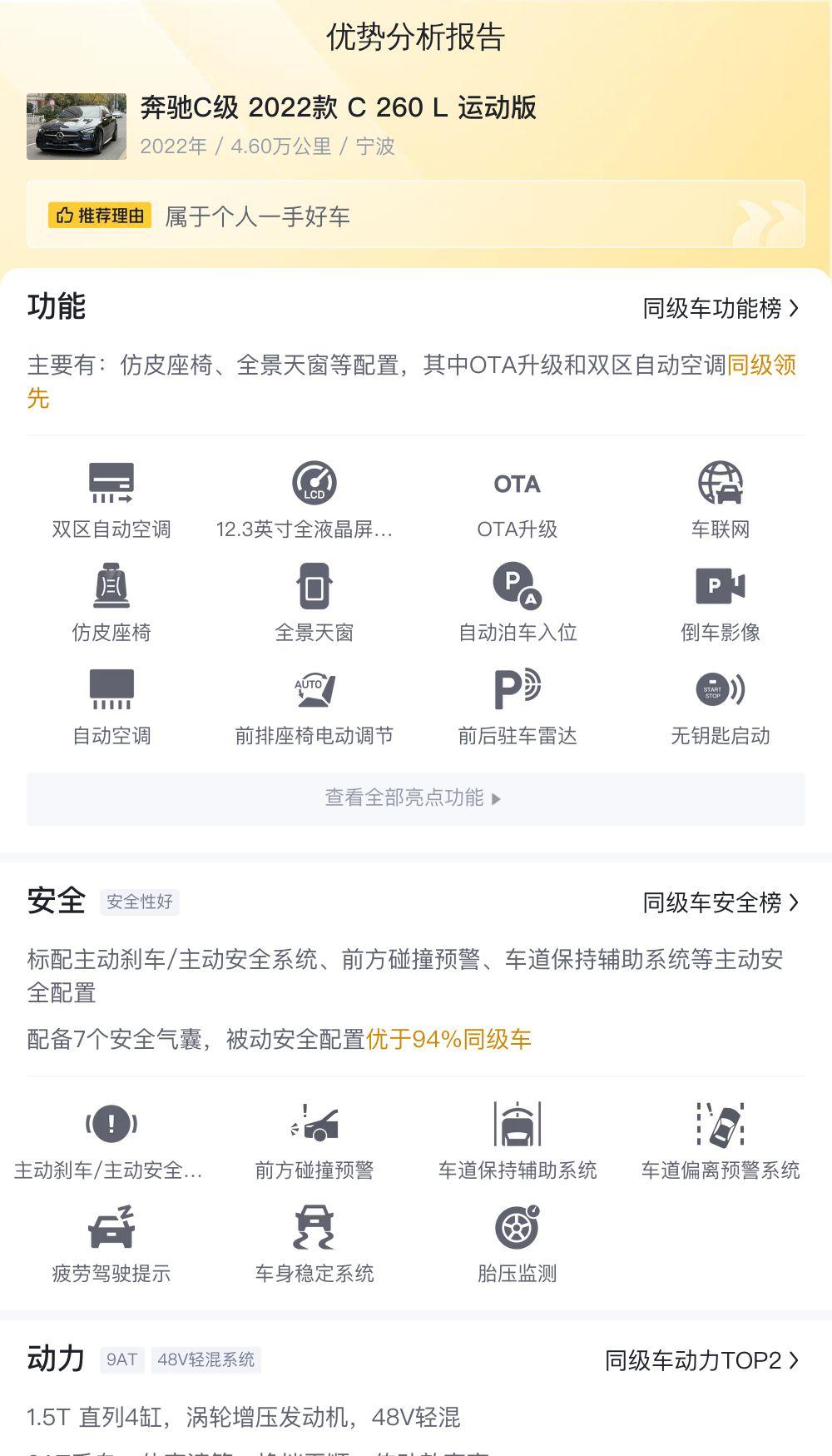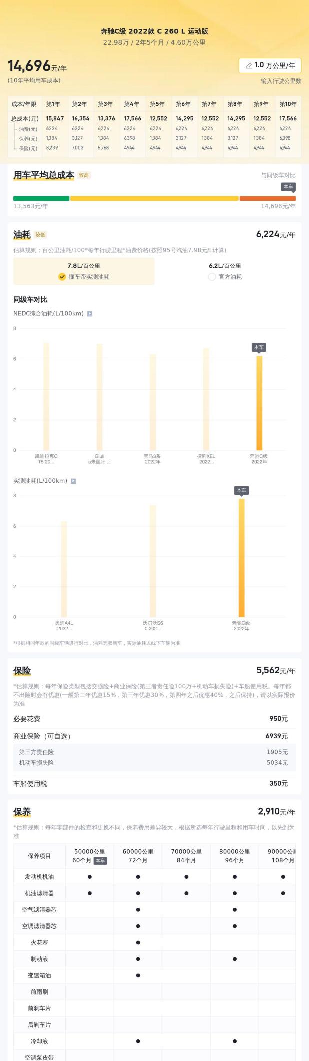 根据大数据显示,目前市场上同款、同年份、相似里程的奔驰C260L二手车价格区间大致在21.6万至25.75万之间,这辆车的报价22.98万处于合理区间。但这只是一个参考值,具体的价格还需要根据车况、配置等因素进行调整。