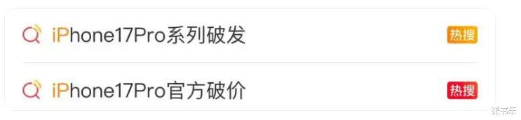 当然,“iPhone17Pro系列破发”“iPhone17Pro官方破价”话题还是很快冲上微博热搜。