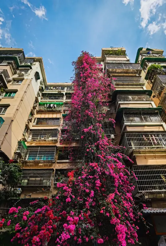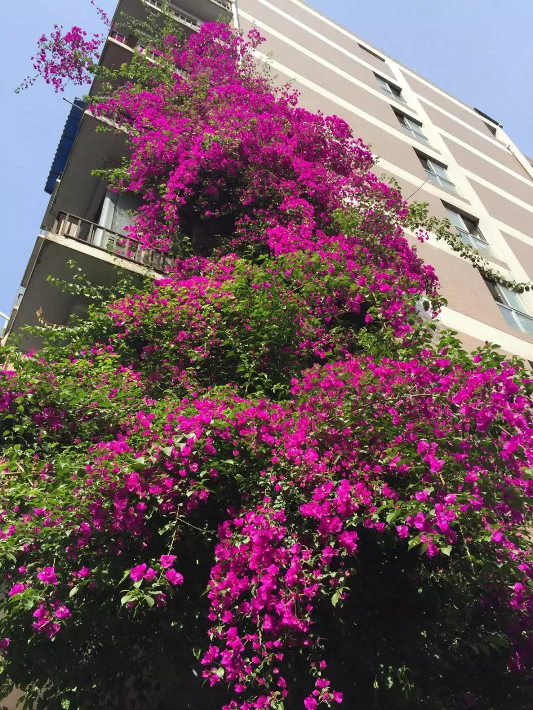 可能对于北方人很难相信三角梅可以无限制的进行生长和攀爬,甚至可以长到四五层楼的高度,南方地区的温度高,室外环境下生长的三角梅,一年12个月里没有任何的休眠期,自始至终都在不断的进行生长和开花,开花的时间甚至超过了大半年。