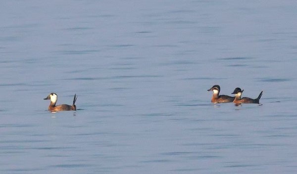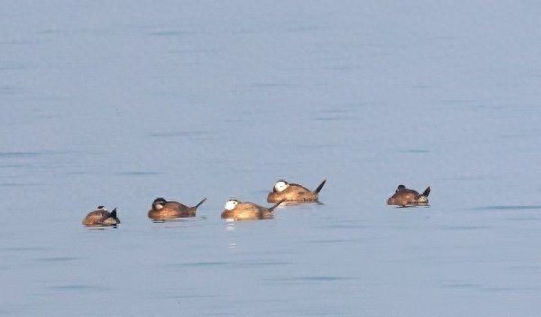 11月29日,鸟友王妍等人在长江新区草湖湿地自然保护区观鸟时,发现8只白头硬尾鸭翘着尾巴,随波漂荡。
