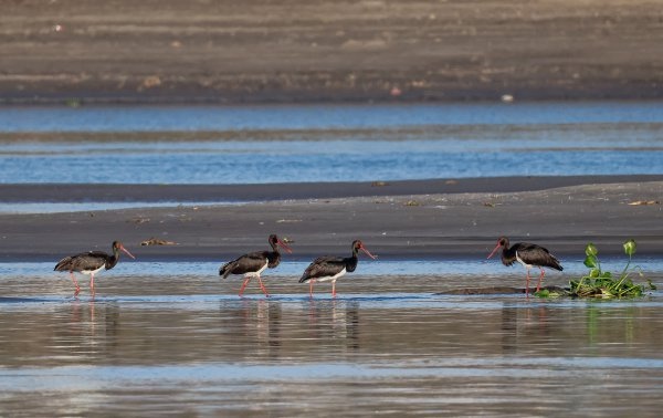 在天兴洲江滩觅食的黑鹳。韩昶光 摄