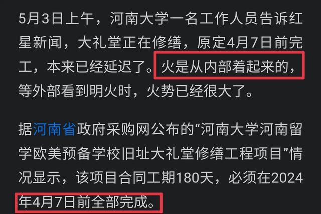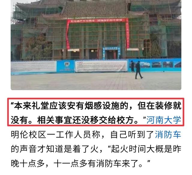 但如果河大礼堂着火,真的是和施工单位的修缮有关,比如安全隐患没排查、施工监管不严格、工人违规作业休息等。