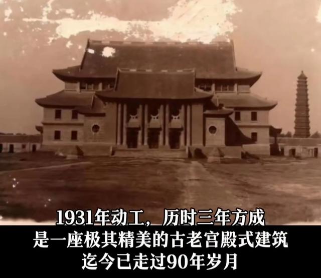 这是一幢宫殿式的古老建筑,飞檐斗阁、青砖灰瓦、绿树掩映、气势恢宏,可容纳3000人同时观礼,是全国重点文物保护单位。