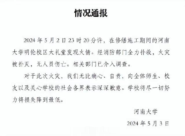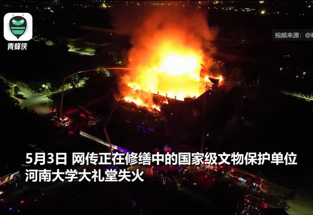河大礼堂着火烧毁事情发生在5月2日23时20分的河南开封,地点是位于开封的河南大学明伦校区!