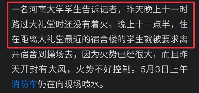 消防员接警是在5月2日23时22分,一名在校大学生夜晚11点路过礼堂时,还没有着火。