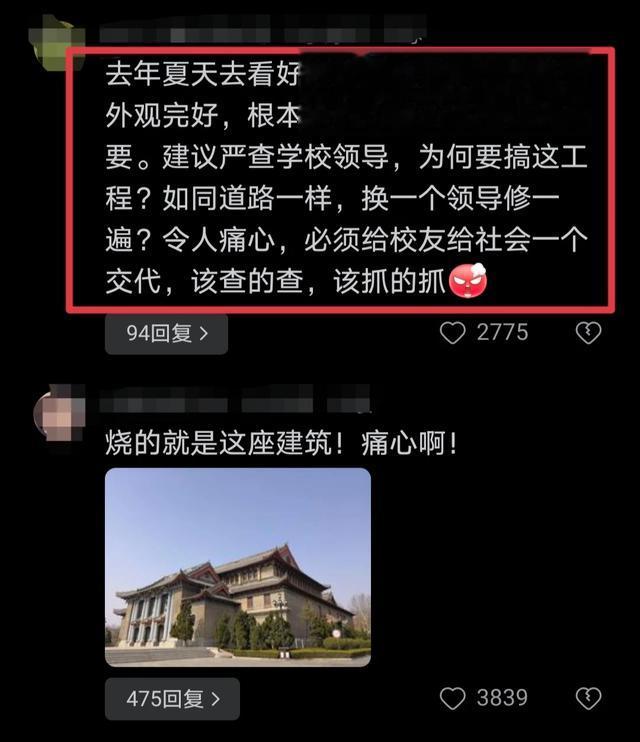 网友们扼腕叹息得知河大大礼堂这个古建筑被烧毁后,很多网友感到心痛,扼腕叹息。