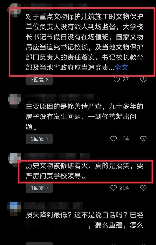 也有人去年去看过,发现内部朱漆鲜艳,外观墙壁也完好,没有必要大动干戈地去修缮。他觉得校领导这样去修缮是别有用心,背后可能有利益交换,希望有关部门严查。