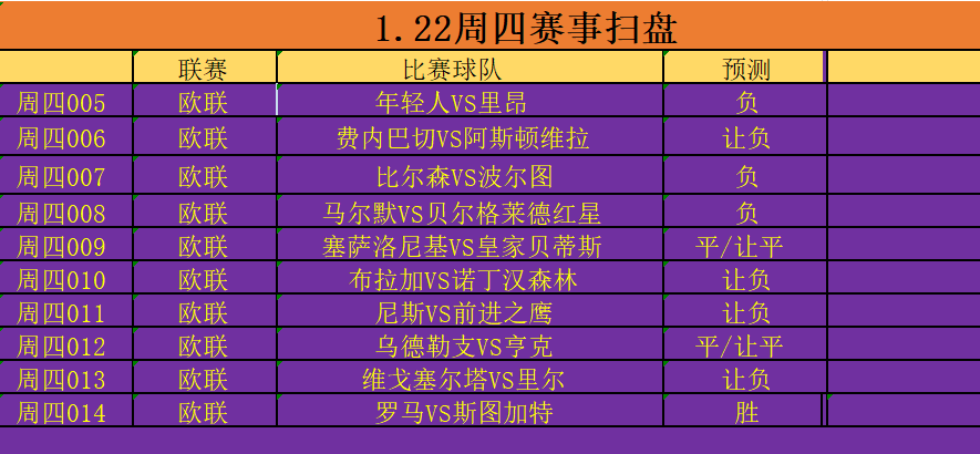 年轻人目前在欧罗巴联赛积分榜上积9分排名第21位,处于附加赛区,近期状态较为低迷,10场比赛取得2胜1平7负的成绩,胜率仅为20%,场均进球1.1个,场均失球高达2.5个,攻防两端表现均不理想。主场方面,球队近5个主场2胜3负,胜率尚可,但防守端依旧存在较大隐患,近期接连输给洛桑、LA林茨、布迪纳摩等对手,防线多次被打爆,单场失球数屡超2球。阵容方面,球队目前有6名球员缺阵,包括马茨·赛勒、法西内特·孔特、艾布里马·科利、贾乌恩·哈贾姆(均为伤病)以及班希·坦古伊·祖克鲁(红牌停赛),主力阵容不整。