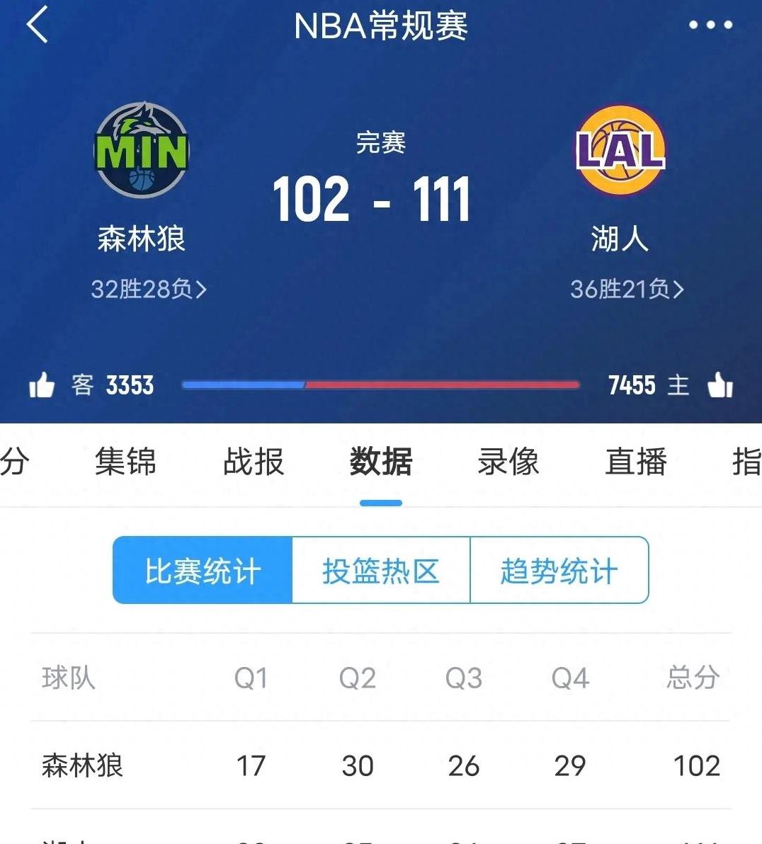 对阵森林狼的比赛,老詹就像定海神针一样,带领球队稳扎稳打,最终拿下胜利。