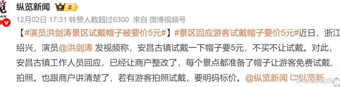 因为试戴帽子收5块钱那事,洪剑涛道歉了。