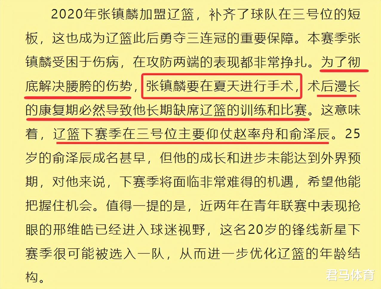 然而,谁也没有料到,在《辽宁日报》爆料张镇麟决定利用休赛期做手术,彻底解决腰胯伤病给他带来的困扰后不久,本人却在深夜通过个人社交媒体回应称自己并不知情。