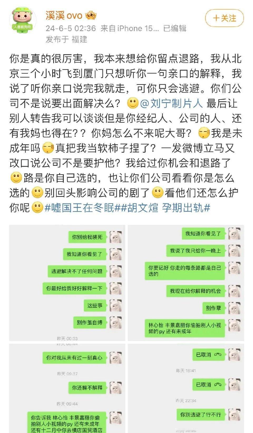 #胡文煊 孕期出轨#《青春有你》胡文煊疑似塌房了?一女子晒出他的熟睡照,说他在剧组工作时撒谎称自己外出游玩,“不蹦迪、不加女生你受不了是吗?有没有想过你加女生的手机都是我给你买的呢?”