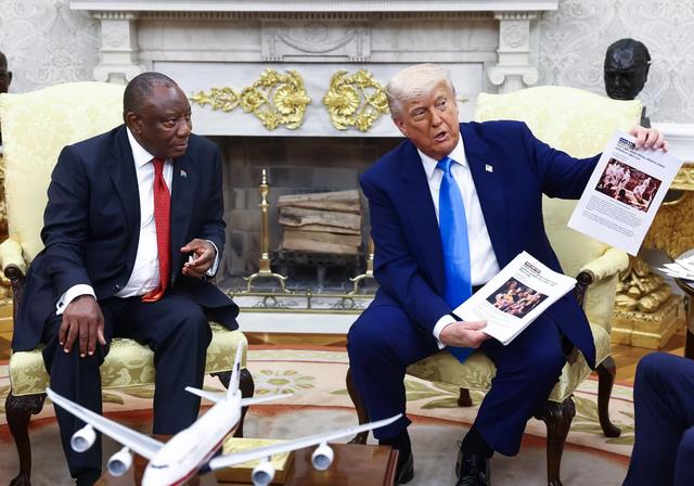 面对南非政府的改革,特朗普政府借机将其称为“反白人”政策,还污蔑其在进行“种族灭绝”。当地时间5月21日,南非总统拉马福萨在白宫会见特朗普时,特朗普突然向其展示一些所谓的“南非针对白人进行种族灭绝”的视频和剪报。可见美国与南非的关系有多紧张。