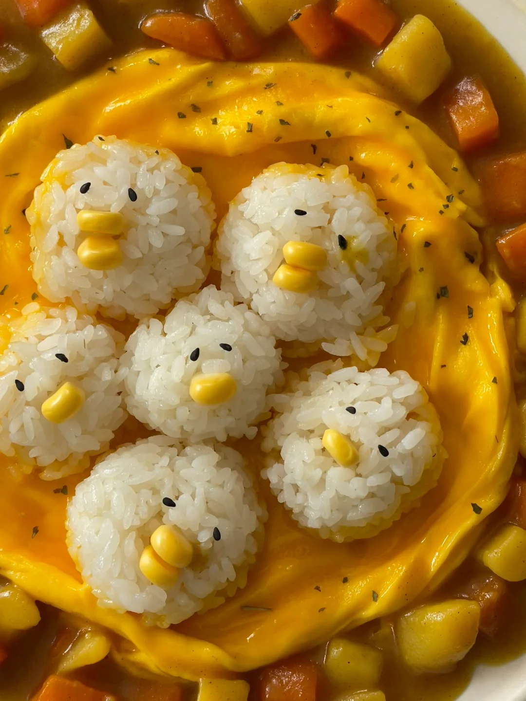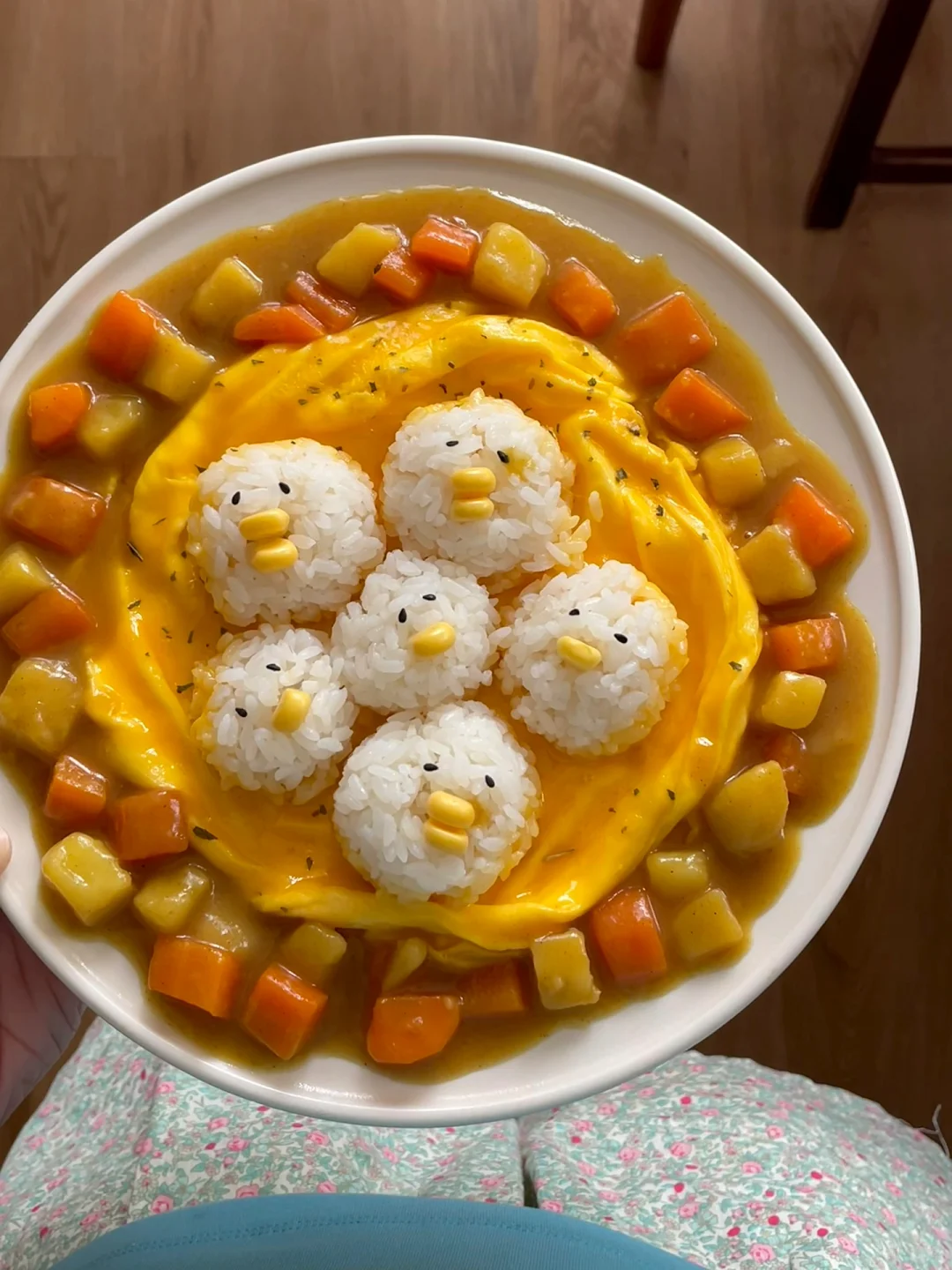 zui近迷恋胖嘟嘟的小黄鸡🐤 他做起来很简单 但真的是很可爱啊 两个眼睛一个鼻子 一只可爱的小鸡就这样诞生了 拿来哄自己 哄女友 哄娃都很不错呀! - 1️⃣滑蛋咖喱饭🍛 2️⃣番茄鸡蛋打卤饭🍛 3️⃣大黄米芝士烙饼 4️⃣玉米面皮塔饼🥙 5️⃣玉米面窝窝头🥣 6️⃣小鸡鱼丸番茄酸汤乌冬面🍜 7️⃣柠檬磅蛋糕🥧 8️⃣玉米粑粑🌽 具体做法可以翻看我的笔记哦