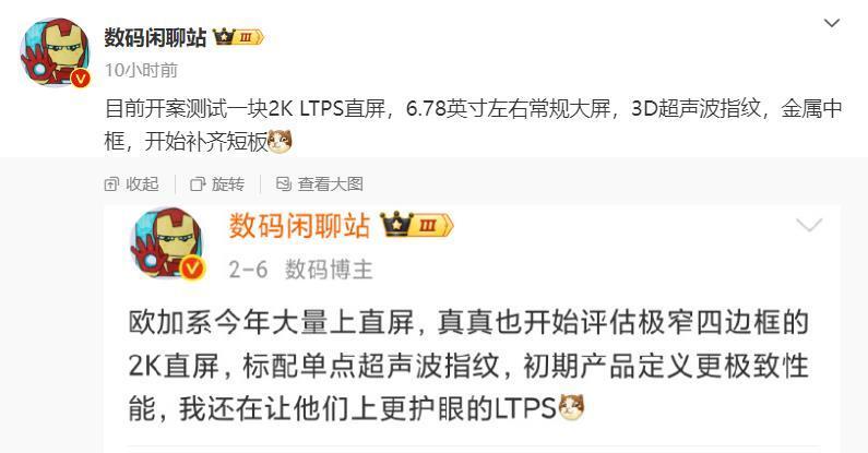 日前,数码博主“智慧皮卡丘”爆料称,“真我冲高,开案2k。”根据目前采用2k屏的机型来看,基本完全是旗舰或电竞手机,那么如果 @真我手机 真要配备2k分辨率屏的话,在功耗方面也完全不用担心续航问题。另外,日前,数码博主“数码闲聊站”也爆料称,欧加系“目前开案测试一块2K LTPS直屏,6.78英寸左右常规大屏,3D超声波指纹,金属中框,开始补齐短板”。
