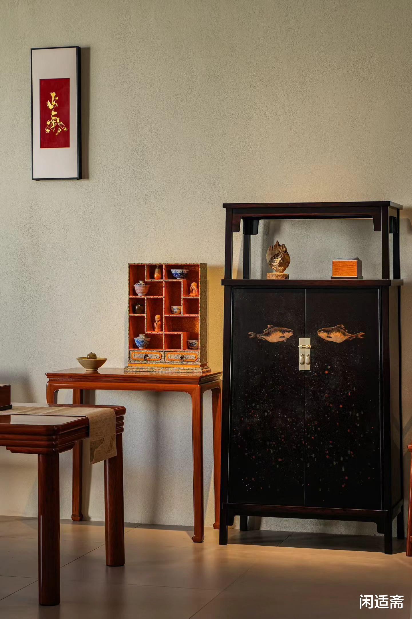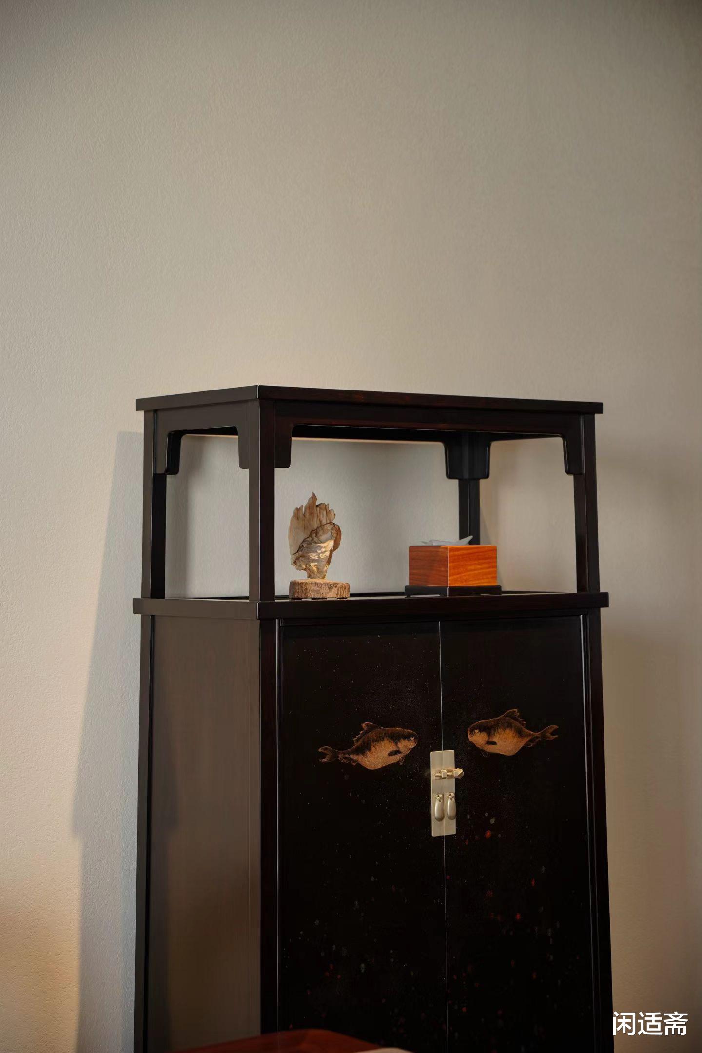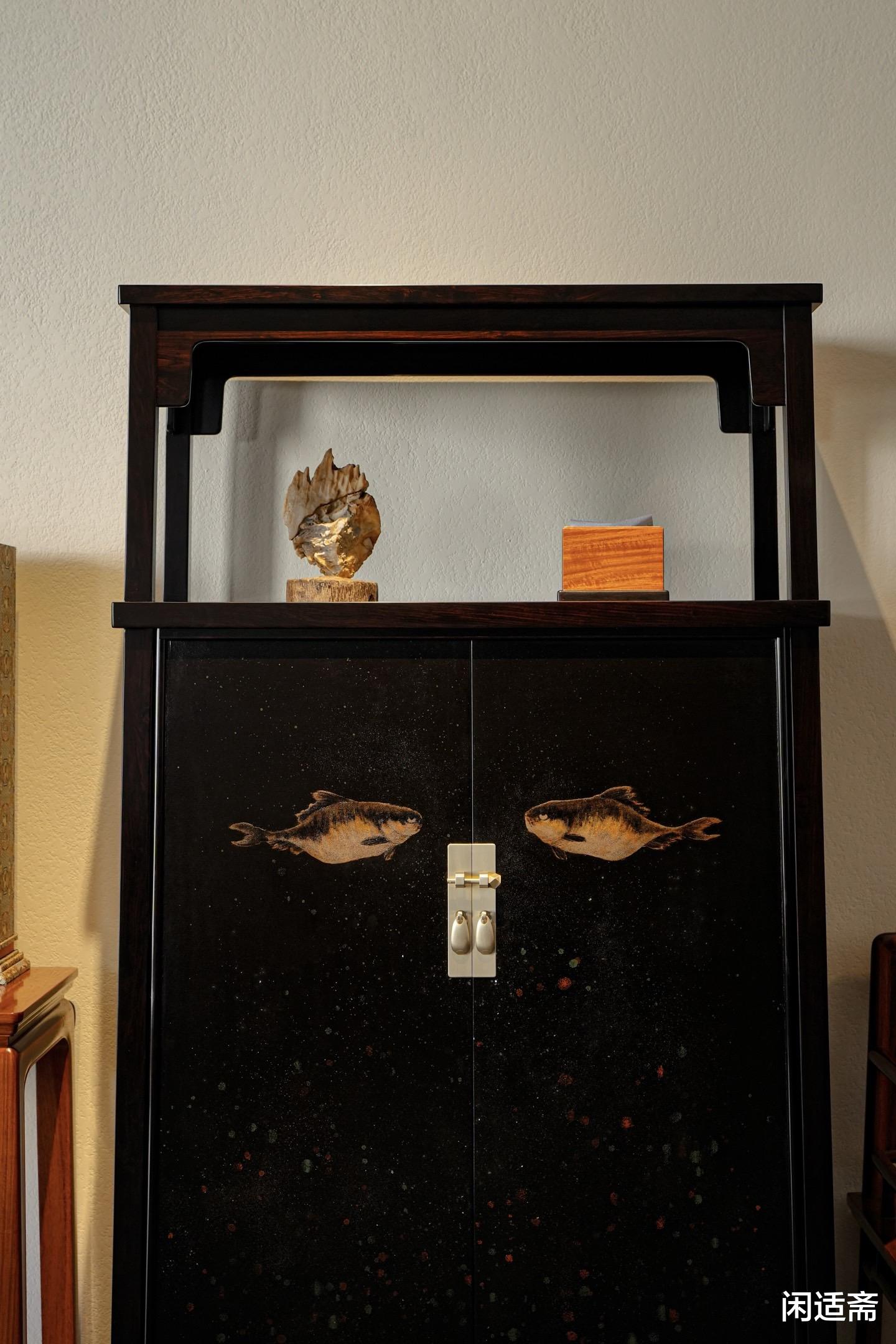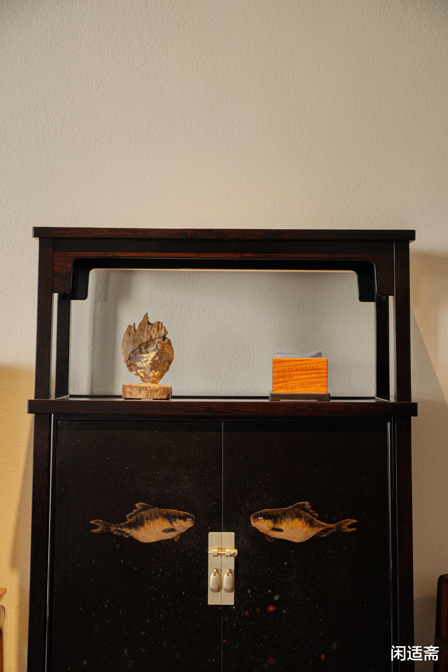 紫光檀亮格柜|大漆晕染八大山人鱼纹,藏尽东方文人美学