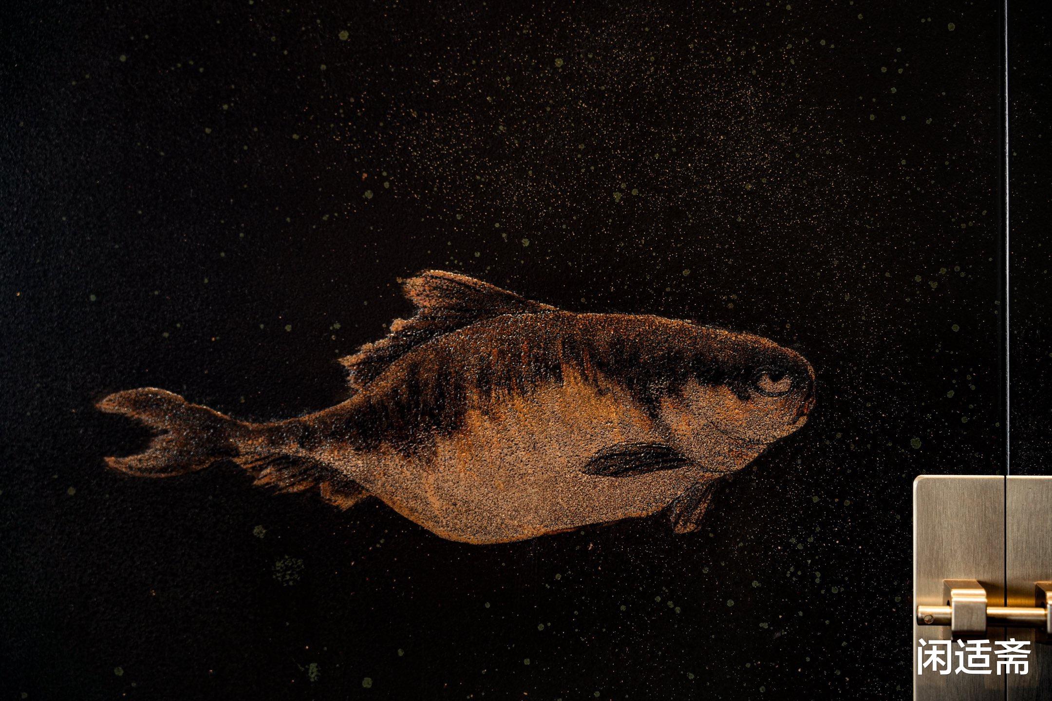 柜子采用古法大漆技法,经多道工序打磨、上漆、晕染,每一步都精益求精,尽显匠人匠心。大漆色泽莹润通透,质感细腻如瓷,不仅能有效保护木材,更能为柜体增添温润光泽,上手丝滑细腻,触感极佳。大漆与文人画意境结合,晕染技法娴熟,让墨色自然过渡,层次分明,为后续鱼纹呈现奠定了雅致基调。