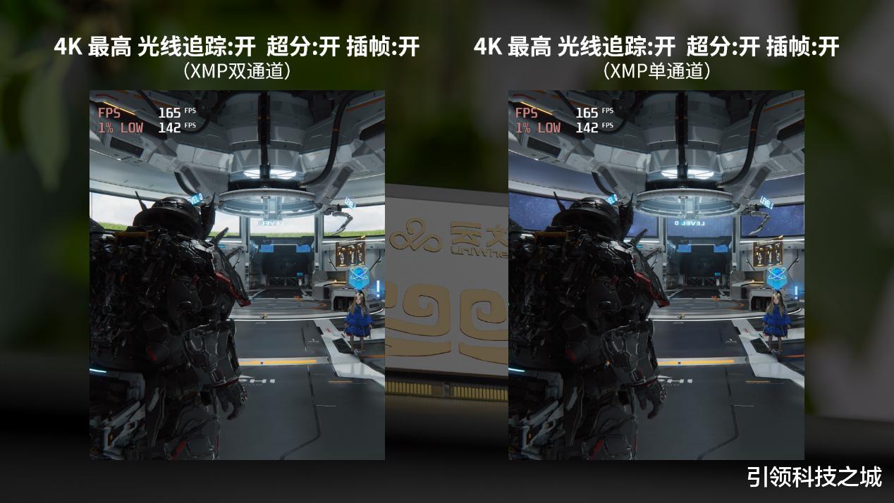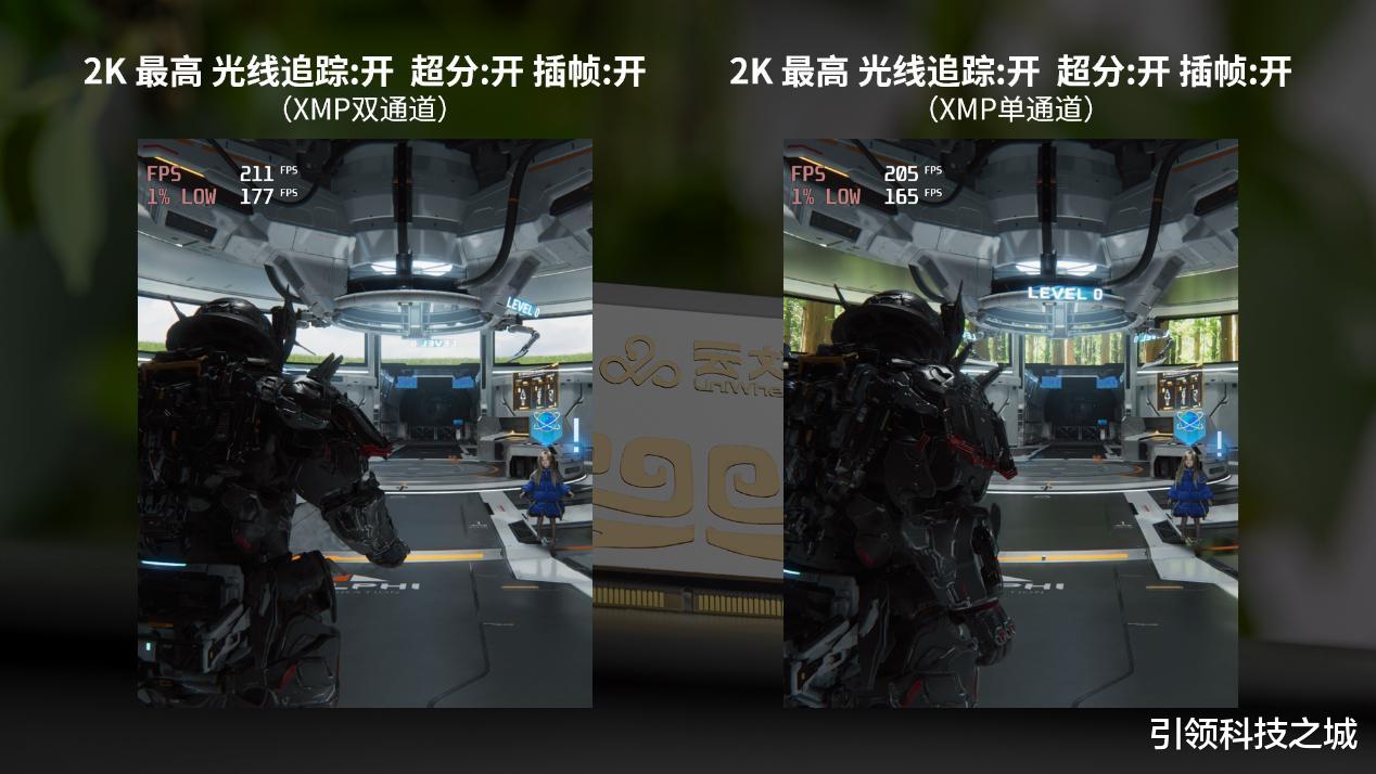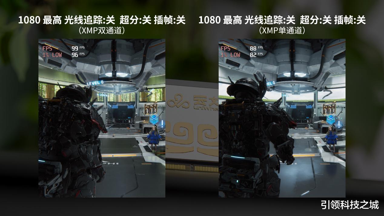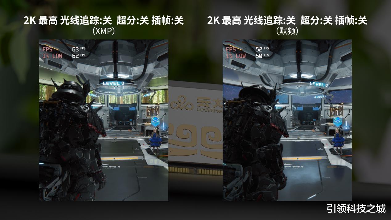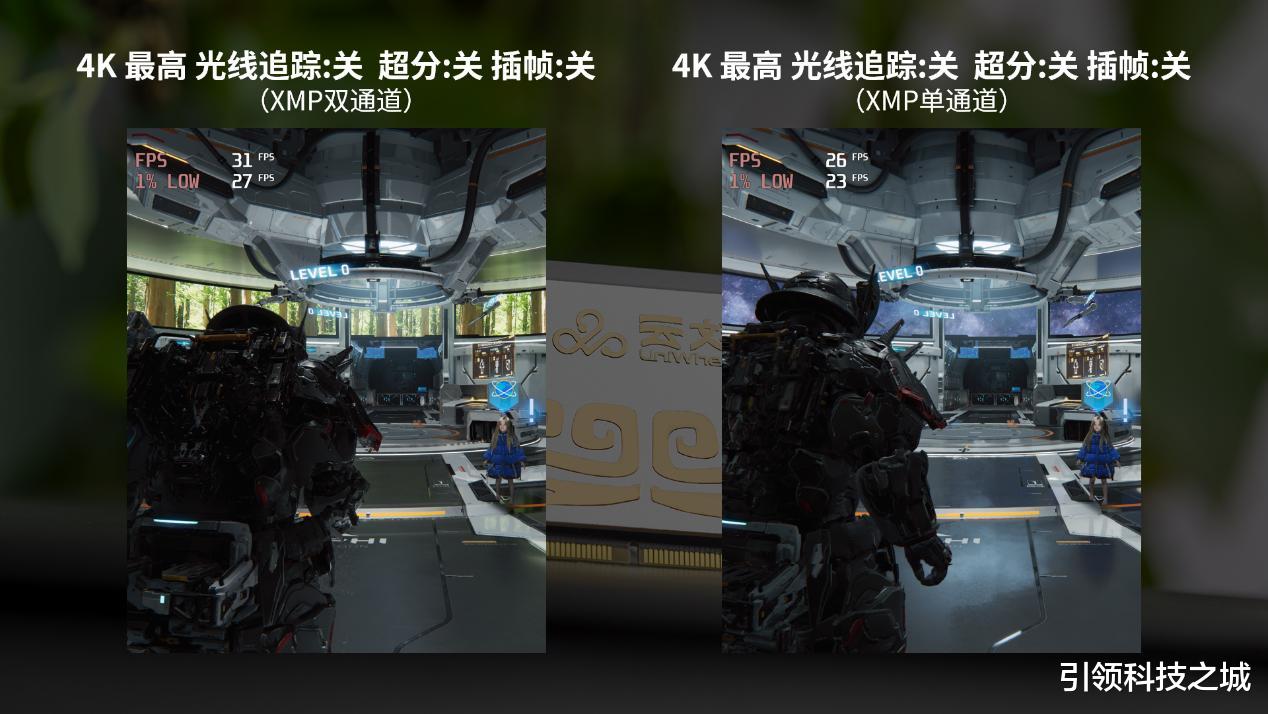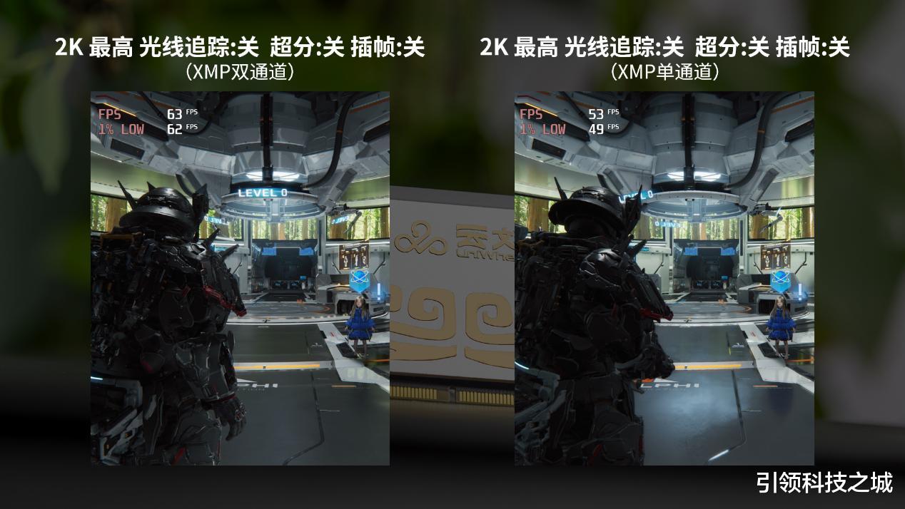 如果你只入手了单条内存,其实也大可不用那么慌。在纯光栅性能下,虽然同规格的单通道帧率表现依然全面落后于双通道,但好在比默频是要给力不少,相差最多的2K Low帧场景也才约26.53%,要知道超频和默频在三个测试场景中的最大差距可是有50%。