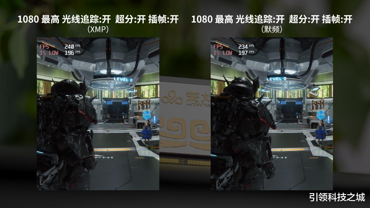 首先是纯光栅性能。墨云藏境在开启XMP超频后,无论4K、2K还是1080P,帧率都是全程领先默频状态,其中4K场景下平均帧与Low帧领先幅度更是达到了夸张的29.17%和50%,即便是差距最小的1080P场景下领先幅度也依然有15%以上。同时,超频后在2K场景就能保持60FPS的流畅水准,而默频只能在1080P下突破及格线。