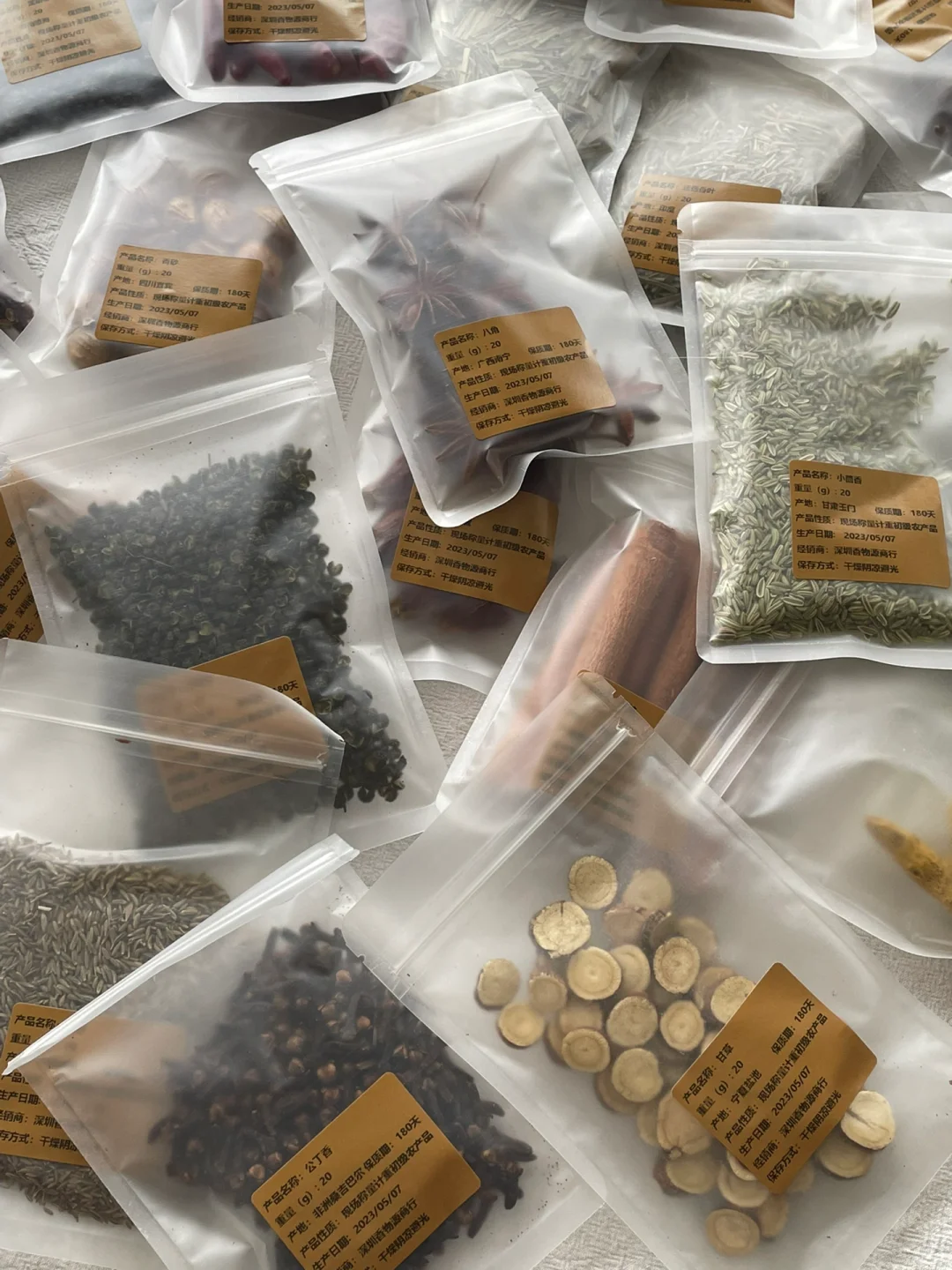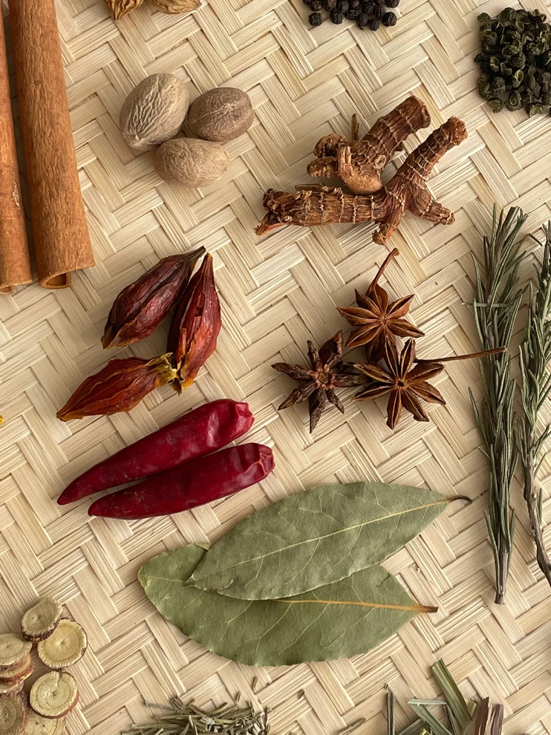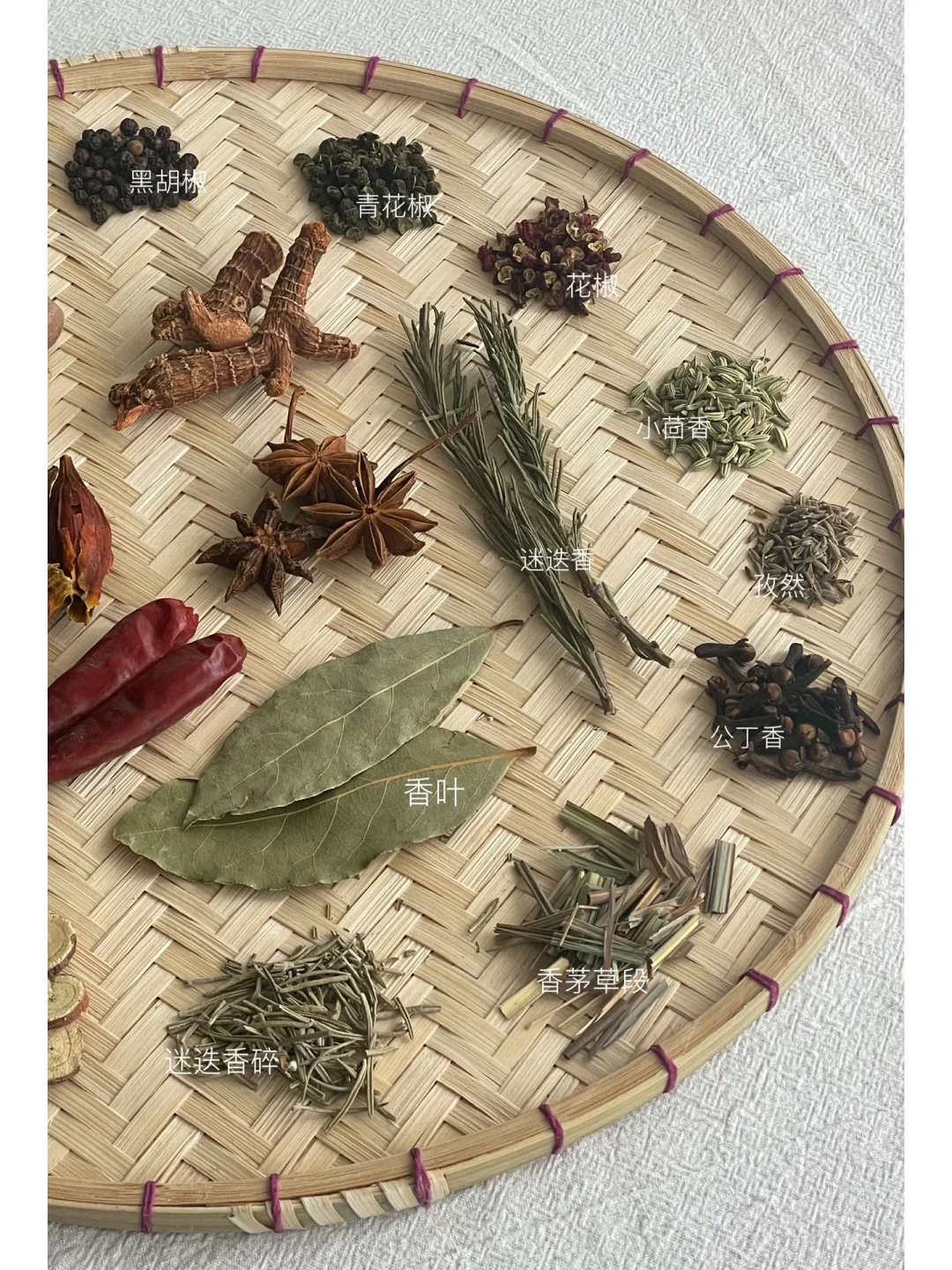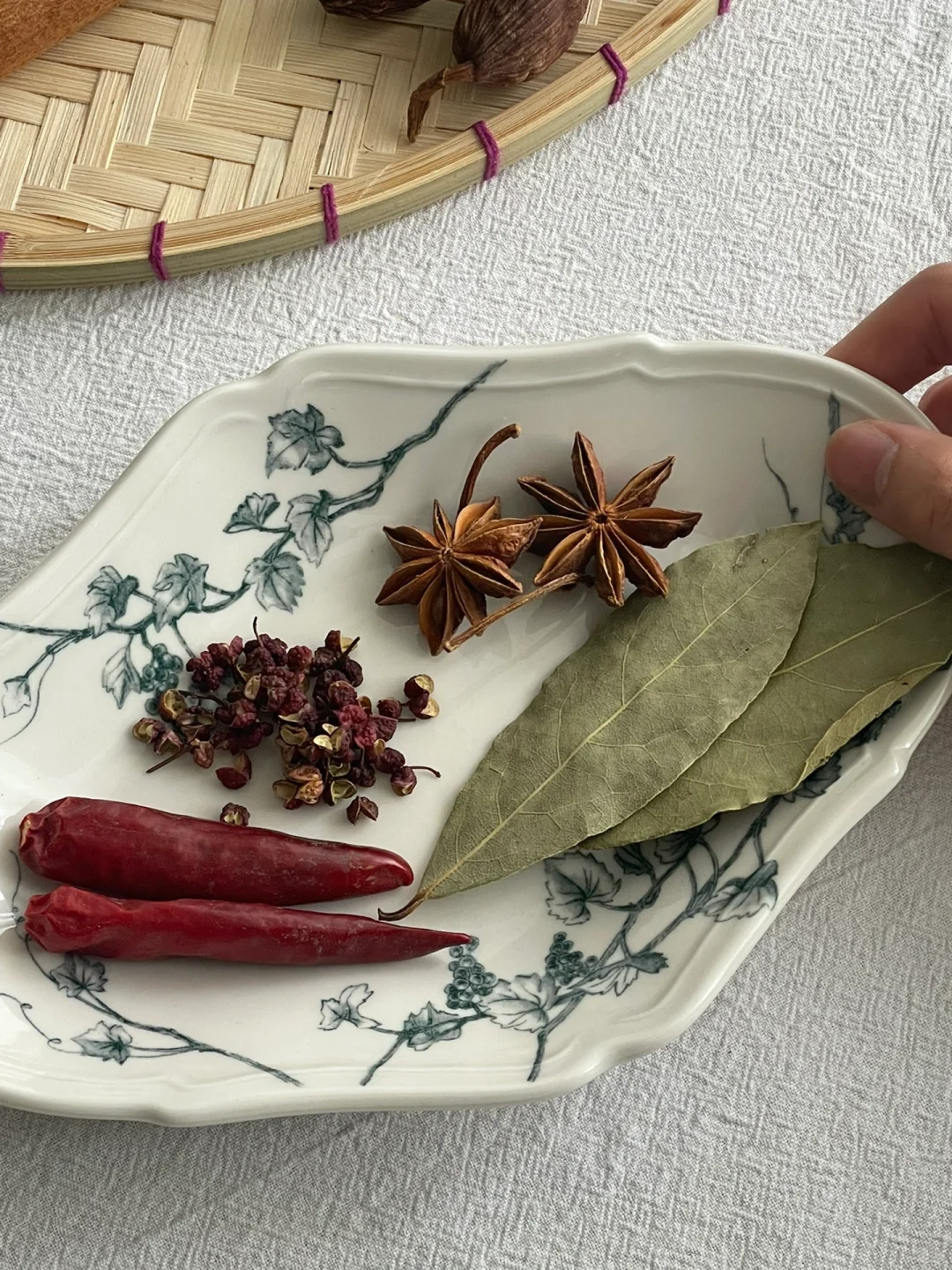 家里我会常备着香料,香叶、八角、花椒、干辣椒是我酱肉时一定会下的,其余的香料会根据口味自行添加