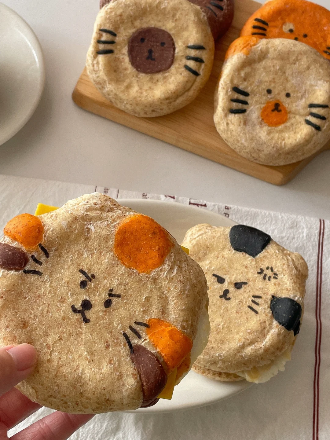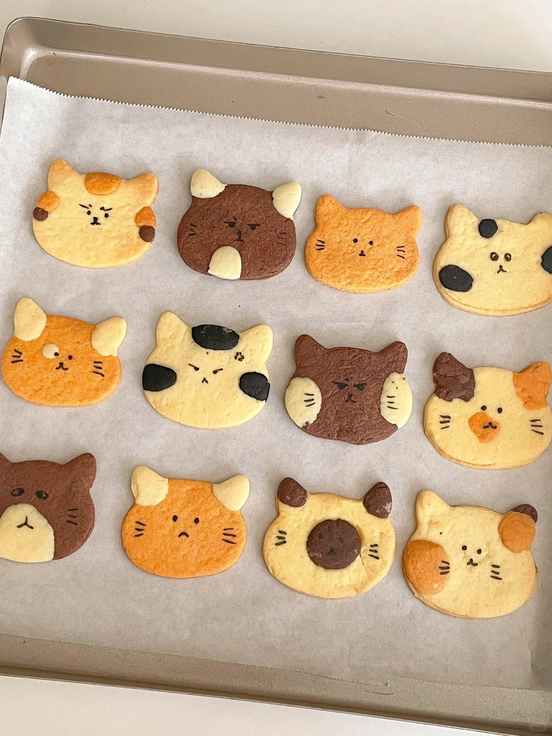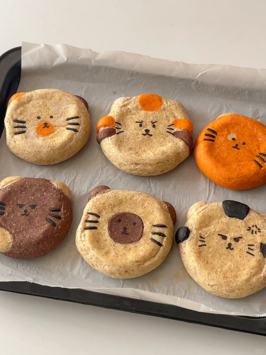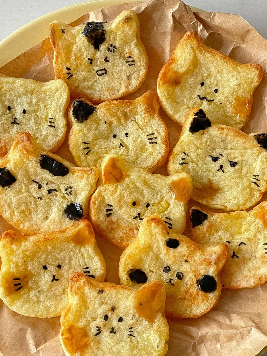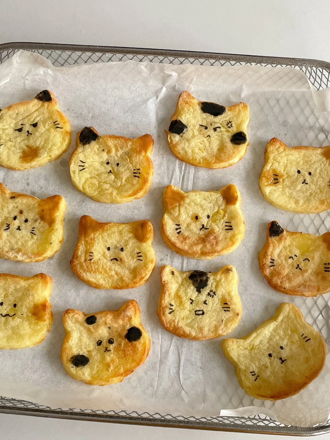 做了很多关于小猫的美食 虽然比小鸡复杂点吧 但是抵不过它可爱呀! - 1️⃣玛格丽特披萨🍕 2️⃣菠萝咕唠肉 3️⃣黄油曲奇 4️⃣全麦麦芬 5️⃣夹心派 6️⃣薯饼 7️⃣燕麦粽子 8️⃣椰香芒果糯米饭 9️⃣叉烧饭 具体做法可以翻看我的笔记哦!