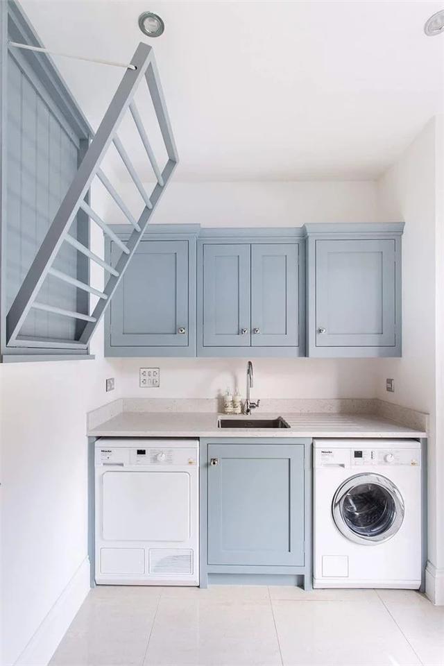 可以安装在洗衣机柜上的墙壁上,简单的框架,拉开45°能挂几件小巧的衣服。