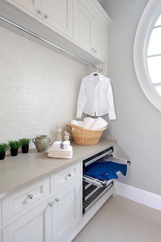 这一款晾衣杆非常简单,没有任何设计可言,与国内的普通晾衣杆差不多。在独立式的洗衣房内,洗手盆上放架一根长杆,烘干后的衣服就能直接取出来挂在上面了。