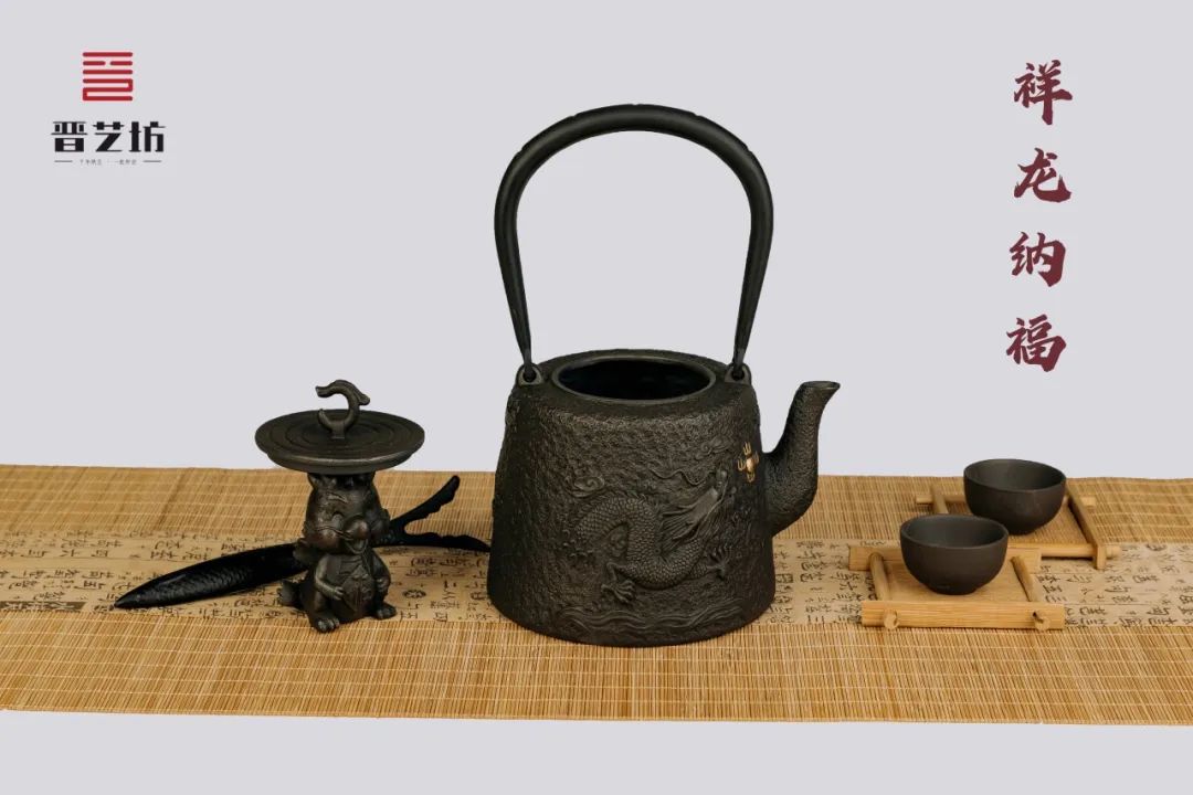 晋城冶铁文化历史悠久,泽州铁壶更是其重要组成部分。晋艺坊《祥龙纳福》由太行山砂铁所铸,采用传统失蜡法,一物一模且唯一,是晋艺坊的创新力作,精湛的技艺和深厚的文化底蕴,制作考究,极具中华风韵。