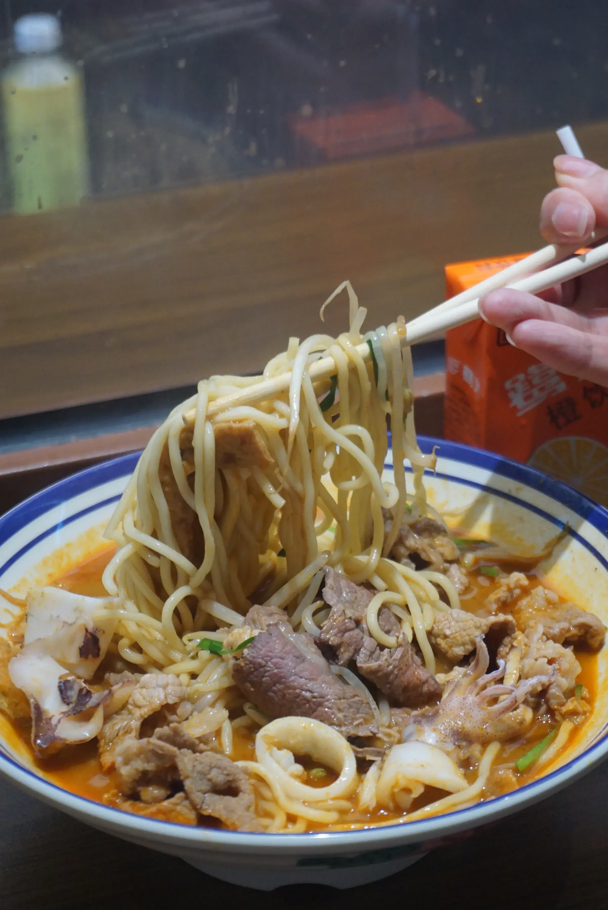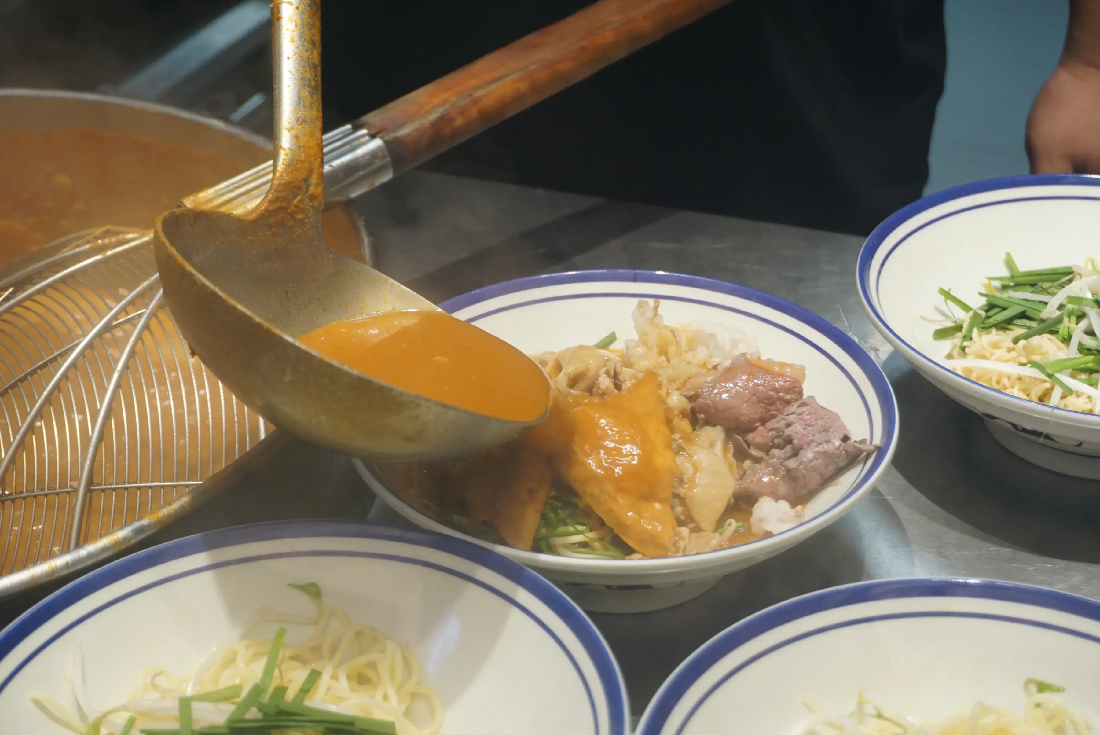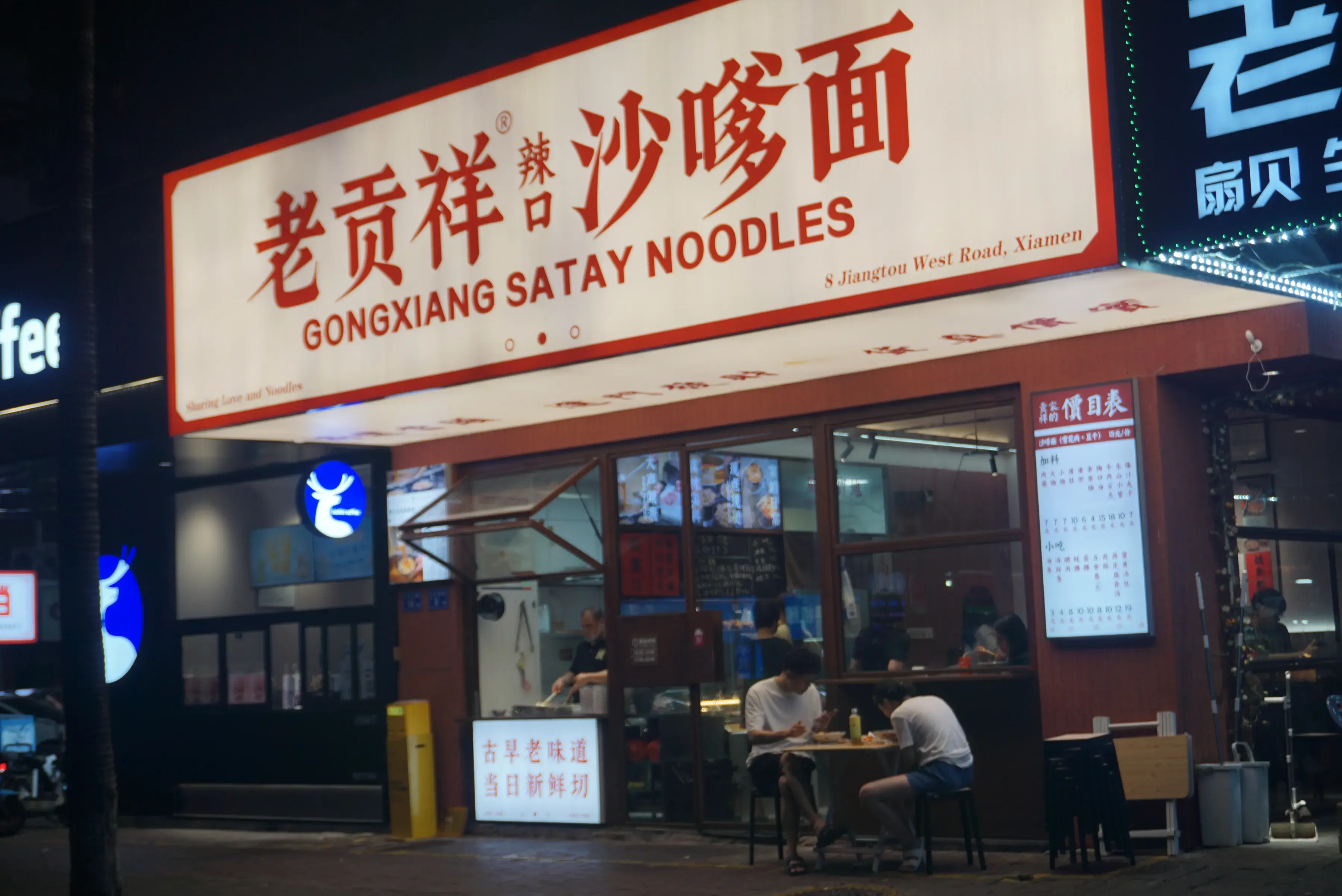 现在喜欢吃这辣口沙嗲面的不需要开车跑去漳州,在厦门吕厝江头附近就能吃到了。下班夜晚路过发现这么一家小店,也太有温馨感了!门口坐着的情侣,橱窗里忙碌掌勺的老板,冒着的烟火热气,看着这一幕这才是深夜食堂吧!!!