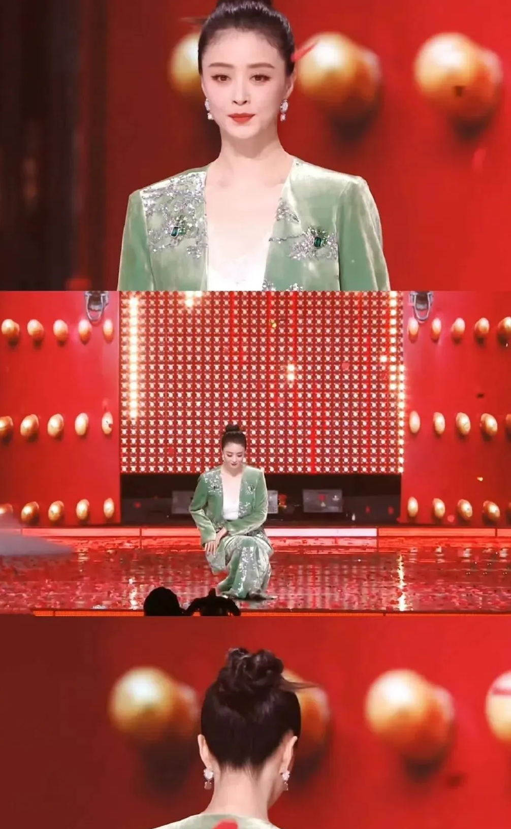 谢幕时屈膝大礼,再起身时仪态万千,那股华妃味十足,仿佛角色瞬间附体,让人不由怀念起她当年的绝代风华。