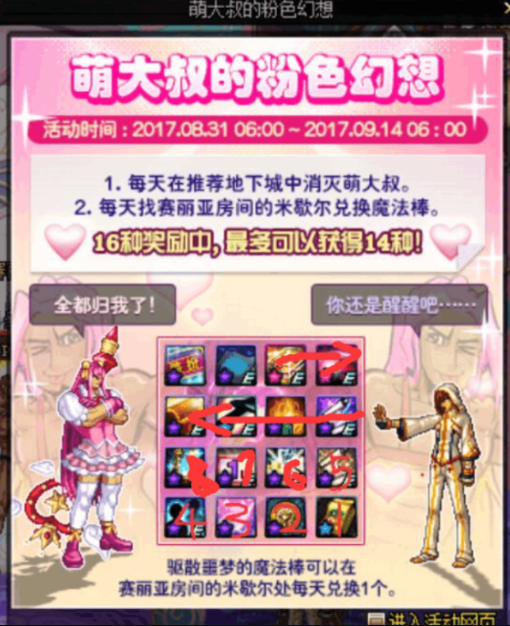 记得之前还出一次萌大叔的粉色幻想的活动,虽然这个活动有点辣眼睛,但是这个活动奖励却是实实在在的良心啊。这个活动可以白嫖到天空兑换券,净化书等极品奖励,这放在当年那是真的很不错了。