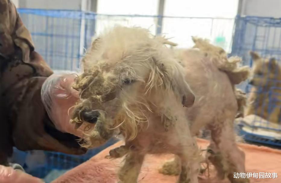 由于我身上的毛发已经打结成块,还有严重的皮肤病问题,身上的毛发已经无法替我保暖!
