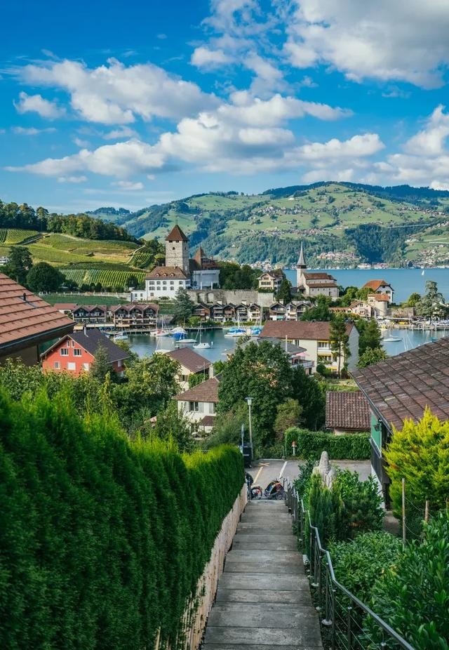 城堡巍峨、教堂庄严、山川壮丽、湖泊澄碧,寥寥数笔,勾勒出瑞士湖畔小镇的绝美画卷。