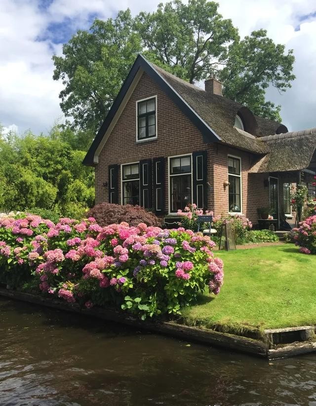 河水静静流淌,两岸房屋依水而建,远离尘嚣,唯有船只轻轻划过水面的涟漪声。