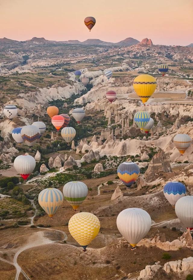而天空中,色彩斑斓的热气球悠然起伏,如同梦幻的使者,引领着旅人步入一个超凡脱俗的仙境。