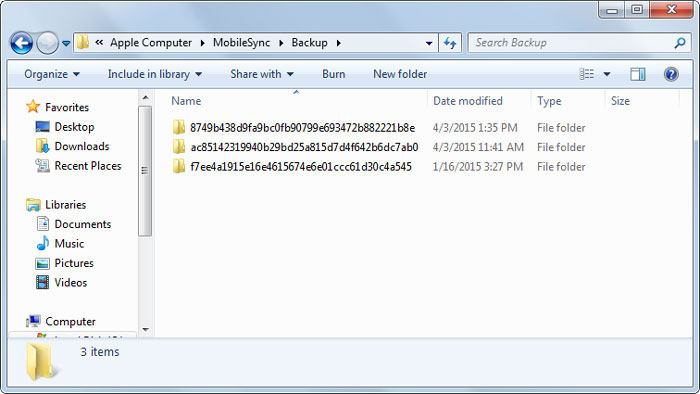 步骤 2. 稍后,转到“C:\Users\用户名\AppData\Roaming\Apple Computer\MobileSync\Backup”,然后选择包含一串数字和字母的备份文件夹。