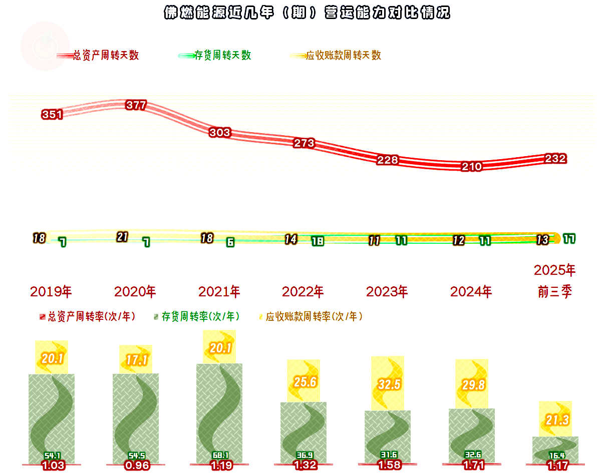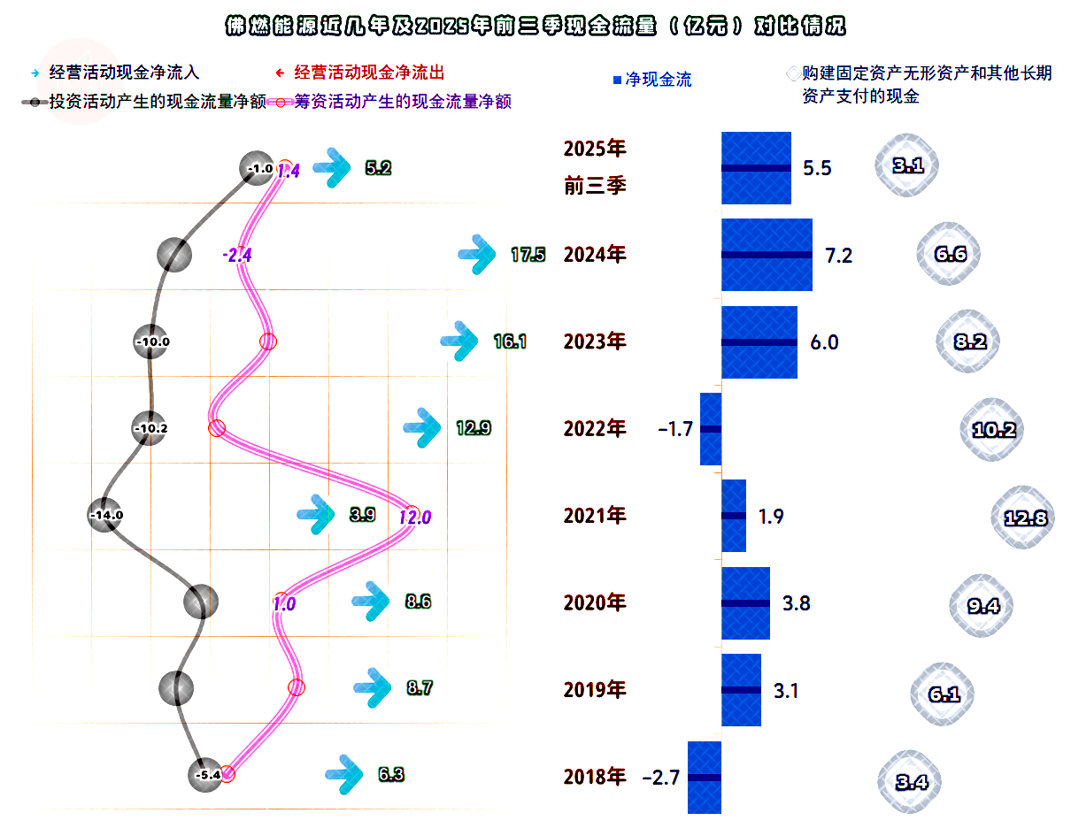“经营活动的现金流量净额”表现还是相当好了,2025年前三季度虽然没有前三年表现好,但全年应该差得不多,毕竟四季度是旺季。固定资产类的投资规模在持续下降,这或许是“城市燃气业务”增长变缓,甚至下跌的原因之一,这类重资产的业务面临着投资回报率下降的问题,适当控制投资规模,还是较为理性的选择。