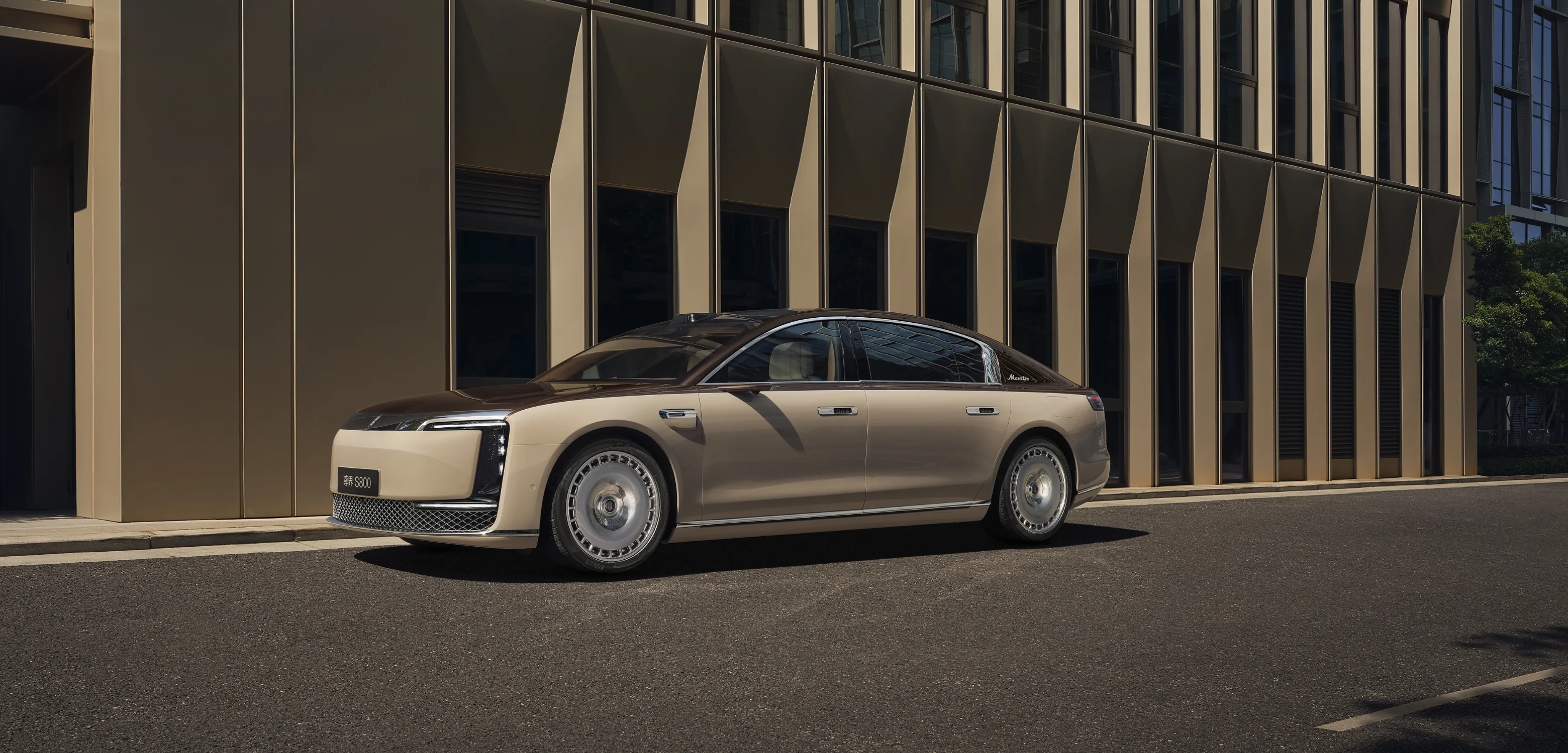 外观设计:尊界S800车身尺寸达到5480mm×2000mm×1536mm,轴距3370mm,整体尺寸与迈巴赫S级相当。细节设计上,星汉灿烂前脸采用96切面水晶大灯,满天星辅灯可实现灯语提示;车侧采用溜背设计,并取消了传统后三角窗,搭配立体星光门把手;车尾采用贯穿式多层立体灯带,内嵌1785个点阵光源,点亮时呈现星环动态变幻,尊界“MAEXTRO”英文标识字样镶嵌于贯穿式尾灯中央。