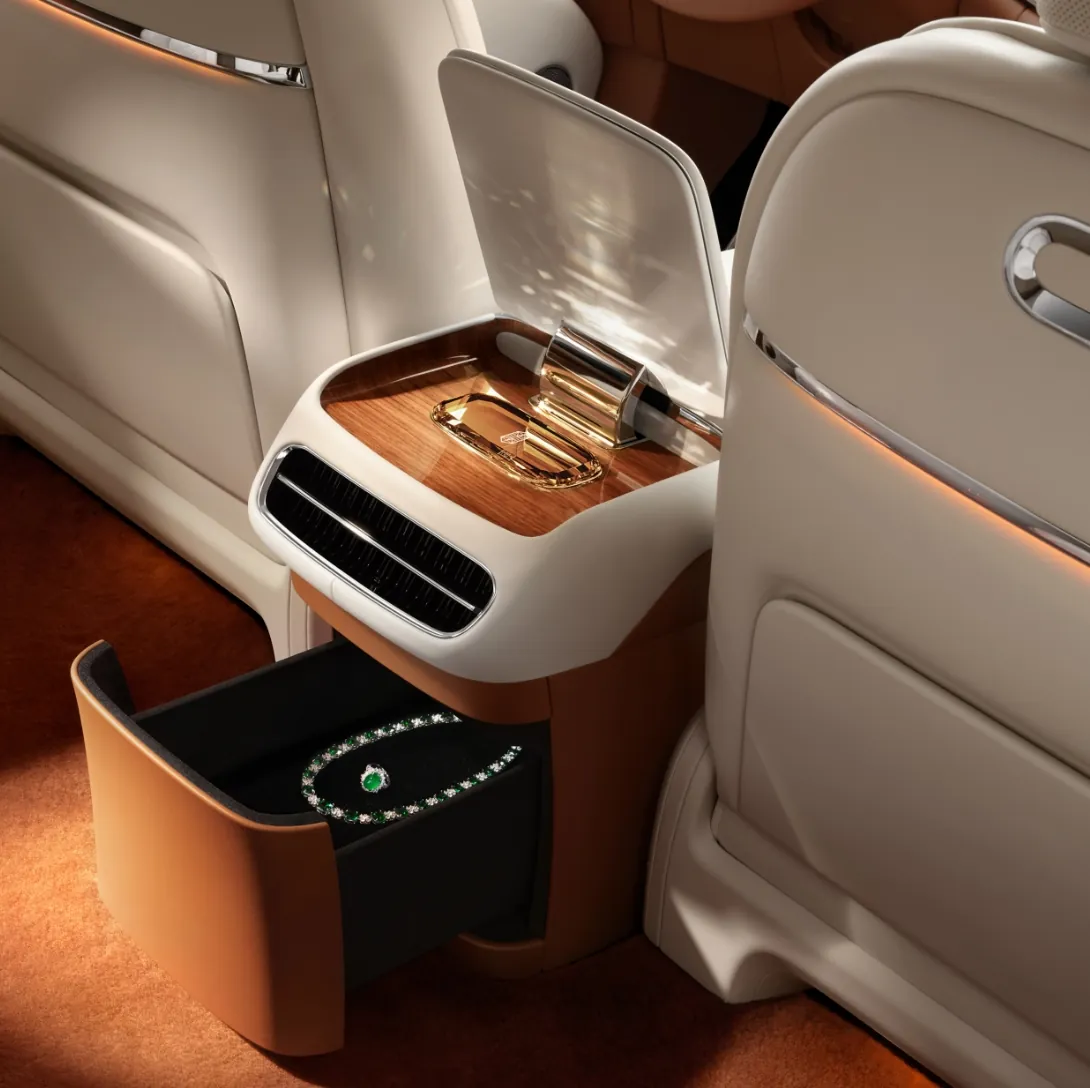 内饰配置:采用鸿蒙智行家族式环抱座舱,配备主驾液晶仪表+中控屏+副驾娱乐屏组成“三联屏”,外加前门上的流媒体外后视镜显示屏,与HUD抬头显示,形成“六屏联动”系统,支持多屏无缝流转操作,音响系统采用首次出现的Huawei Sound Ultimate非凡系列,拥有43扬声器,功放最大功率达到2920W。超大空间的后排与前排之间通过40英寸升降幕布实现前后排物理隔离,并通过音响白噪音算法自动隔离前后排声音,隐私光幕玻璃可通过手势控制玻璃的遮光性,从声、光、视觉提升私密性;中高配车型搭配的零重力座椅支持20向座椅电动调节,4向头枕电动调节,4向腿托电动调节,最大支持148.5° 仰角,并可联动华为ADS智能辅助驾驶系统,当检测到可能遇险时自动调整座椅姿态。此外冷暖杯托、压缩机冰箱、含化妆镜的可折叠小桌板、指纹密码箱等功能也有配备。