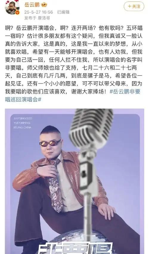 自己跳出来用“啊啊啊岳云鹏要开演唱会”这种方式官宣,观众一时间都以为是玩笑。