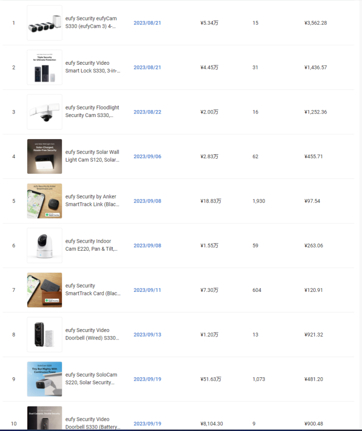 最开始,eufy在TikTok shop卖的,大部分是亚马逊上热销的款式,从8月到12月,大概上50款。