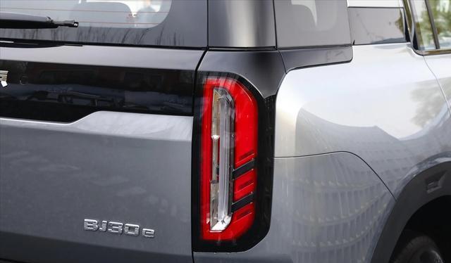 说起来北京BJ30这车啊,一瞅前脸,嘿,那就是家族老面孔了,五孔设计,硬气中带着点儿复古范儿,还透出一股子机械味儿。下边儿那包围,大得很,里头层层叠叠的格栅,整得跟个小迷宫似的,立体感爆棚。所以说,BJ30这颜值,出门儿绝对不掉链子。再瞅瞅侧面,车身线条那叫一个方正,硬邦邦的,车尾呢,又有点儿游艇那味儿,隐约间还能看到路虎发现的影子,算是致敬经典了。后视镜、轮眉、车门下边儿,都整了点儿黑色装饰,典型的硬派SUV套路嘛。尾部呢,走的是简约风,但那两排竖着的灯组,太抢眼了,红白黑配色,一亮起来,哇塞,那视觉效果,杠杠的,震撼人心呐!