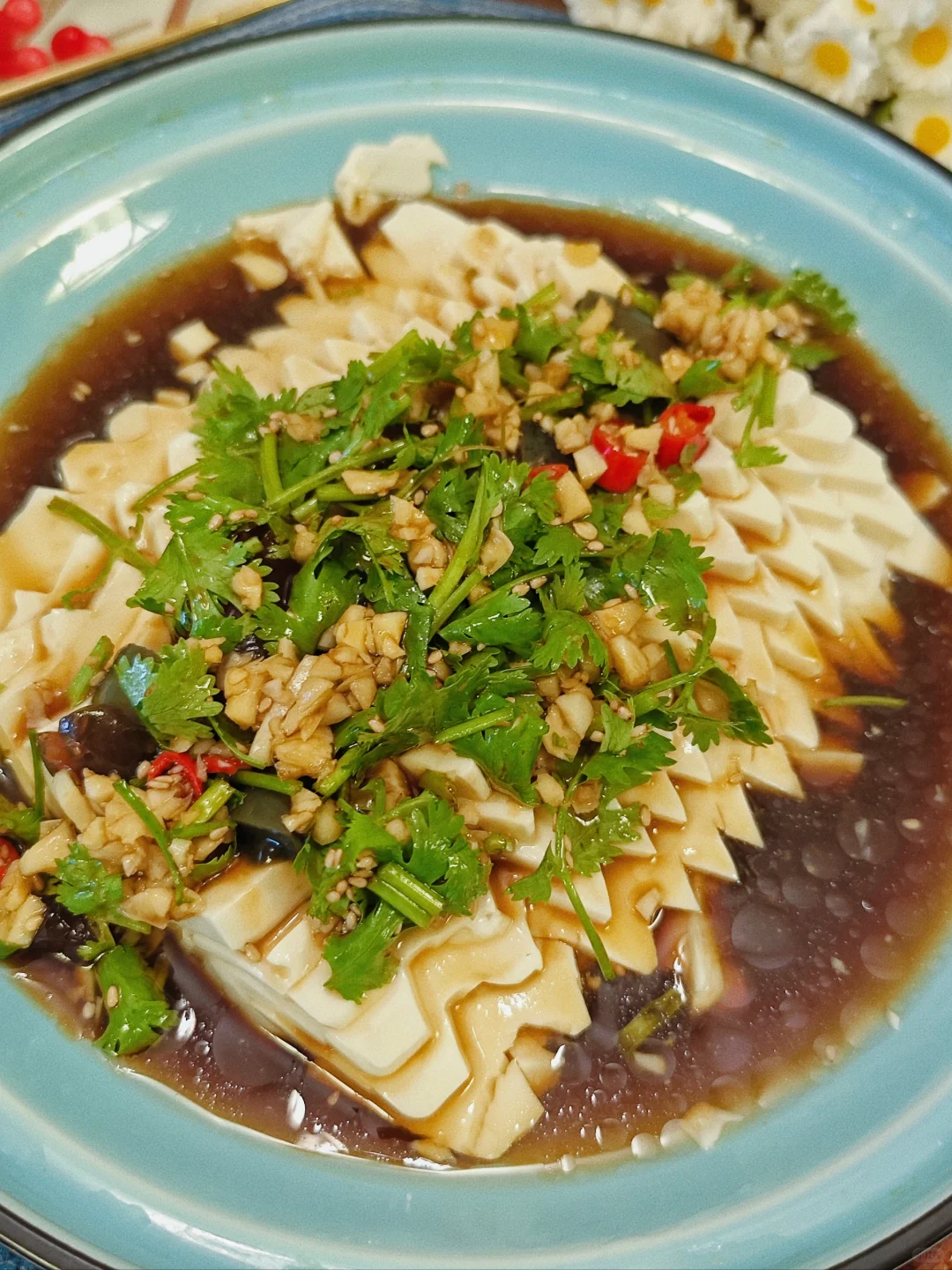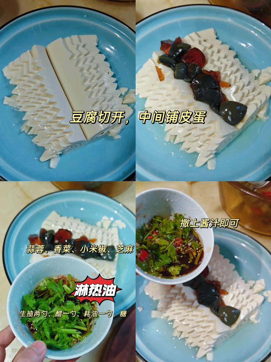 夏日的清凉凉拌菜,几分钟就能搞定! 爽滑嫩口,低脂也适合下饭! · 🍃准备食材 内脂豆腐、皮蛋、香菜、蒜末、小米椒 · 🍃做法:敲简单的,见图四! ⚠️豆腐要选内脂豆腐哈,家里有榨菜还可以加一点味道更好! ·