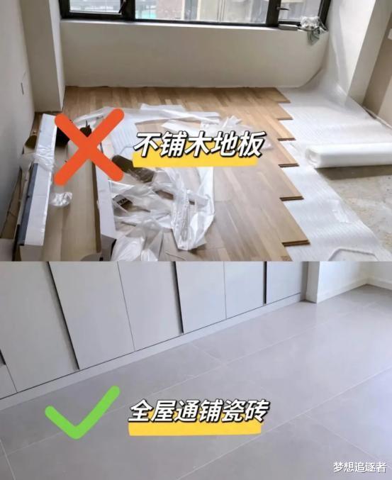 现在很多年轻人装修,都喜欢追求各种网红款,比如什么原木地板、局部木纹瓷砖等等,看着确实很漂亮,但价格可不便宜,而且还容易损坏,后期维护也麻烦。其实, 全屋通铺大规格瓷砖,才是性价比之王!选择80×80的标准瓷砖,不仅价格实惠,而且空间感更强,整体视觉效果也更美观。 关键是,铺设前一定要让设计师出个详细的铺设图,尽量减少浪费,还能把瓷砖的瑕疵藏起来,一举多得!