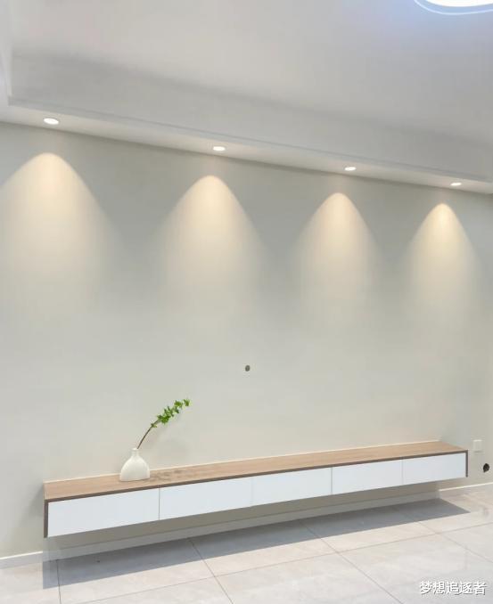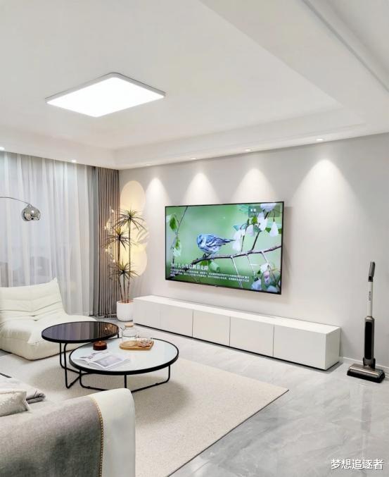 现在很流行各种悬空电视背景墙、格栅背景墙,看着挺时尚的,但实际上非常不实用,还特别容易积灰,增加了家务负担。 与其追求这些华而不实的设计,不如直接做个满墙柜! 既能增加大量的收纳空间,又能提高空间利用率。当然,开放式收纳也要谨慎,建议大家采用“八二设计法”,80%封闭式收纳,20%开放式收纳,这样既美观又实用。