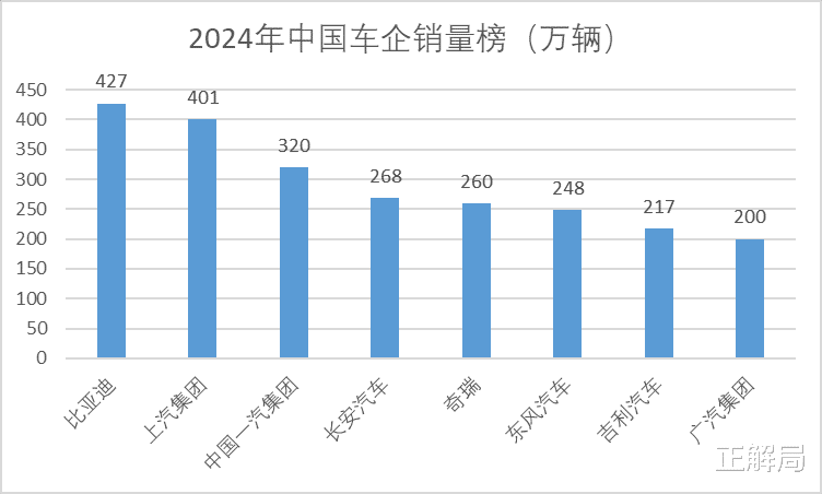 中国车企2024年销量排行,东风排名第6