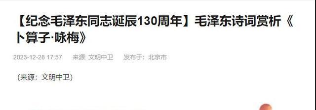 【纪念毛泽东同志诞辰130周年】毛泽东诗词赏析《卜算子·咏梅》