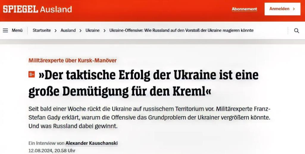 德国《明镜周刊》:从长远来看,对库尔斯克的进攻可能导致乌克兰的失败。